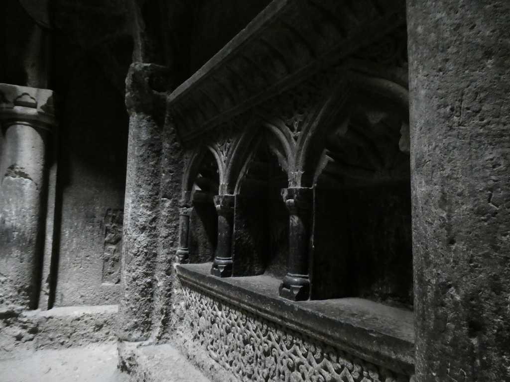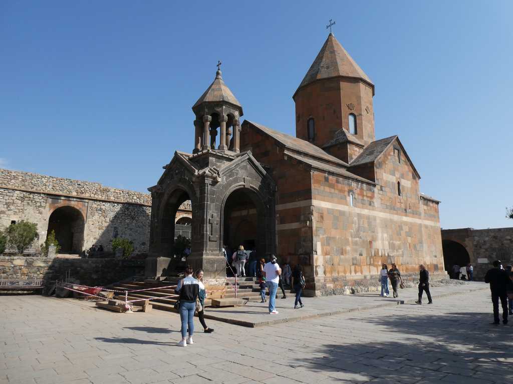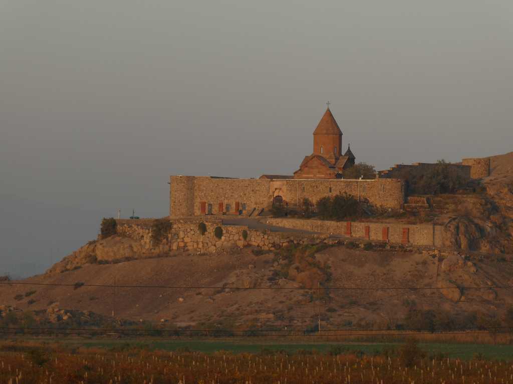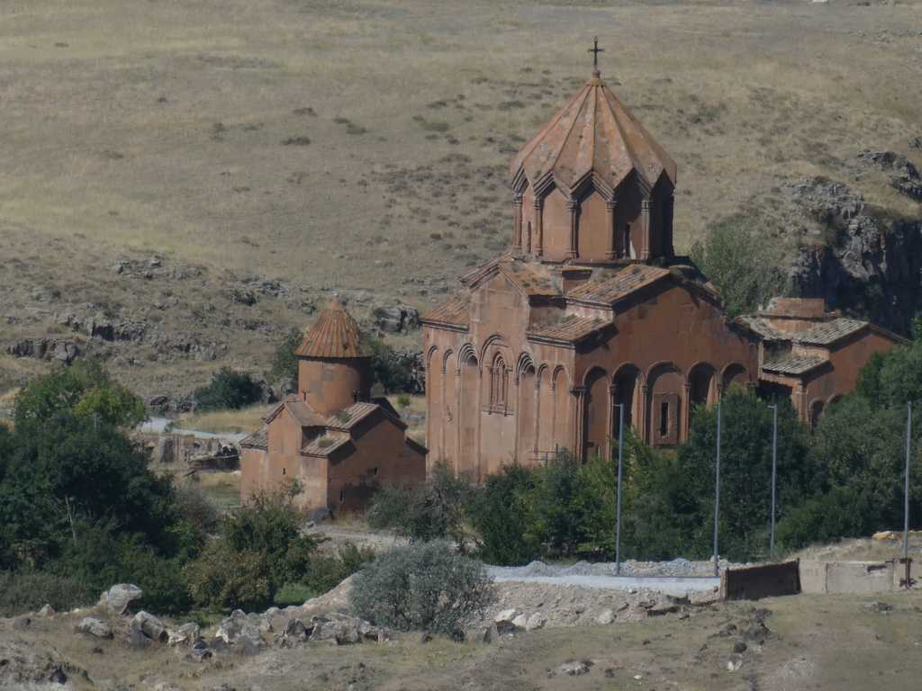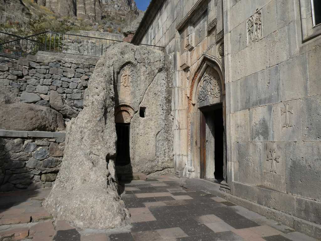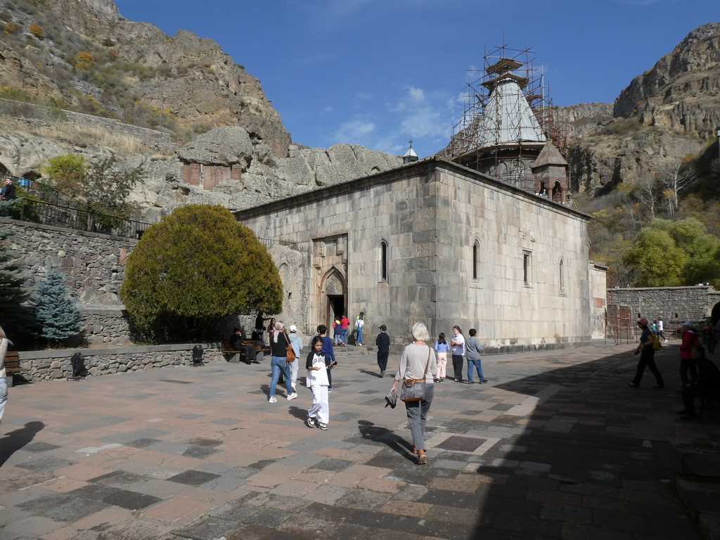 Durch eine enge Schlucht geht die Straße in ein Seitental zum Kloster Noravankh. Dort passen sich die Klostergebäude sehr harmonisch in die Landschaft ein und verschmelzen geradezu mit den Felsen im Hintergrund.