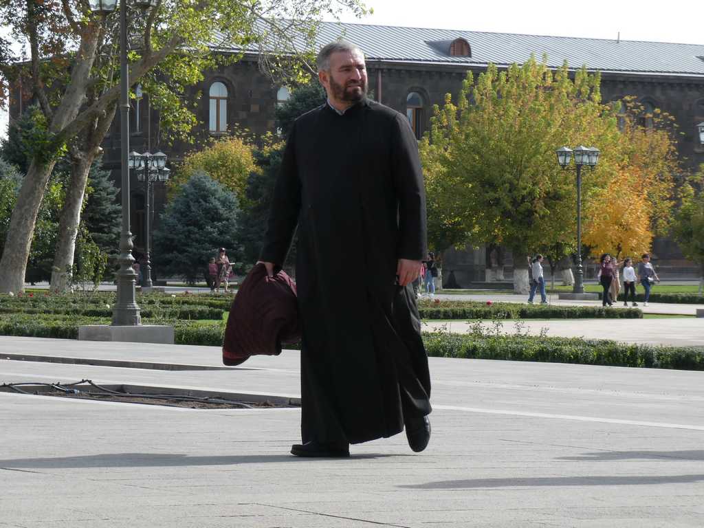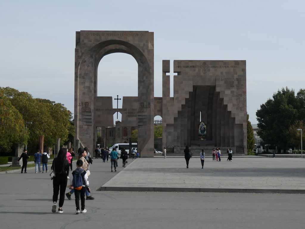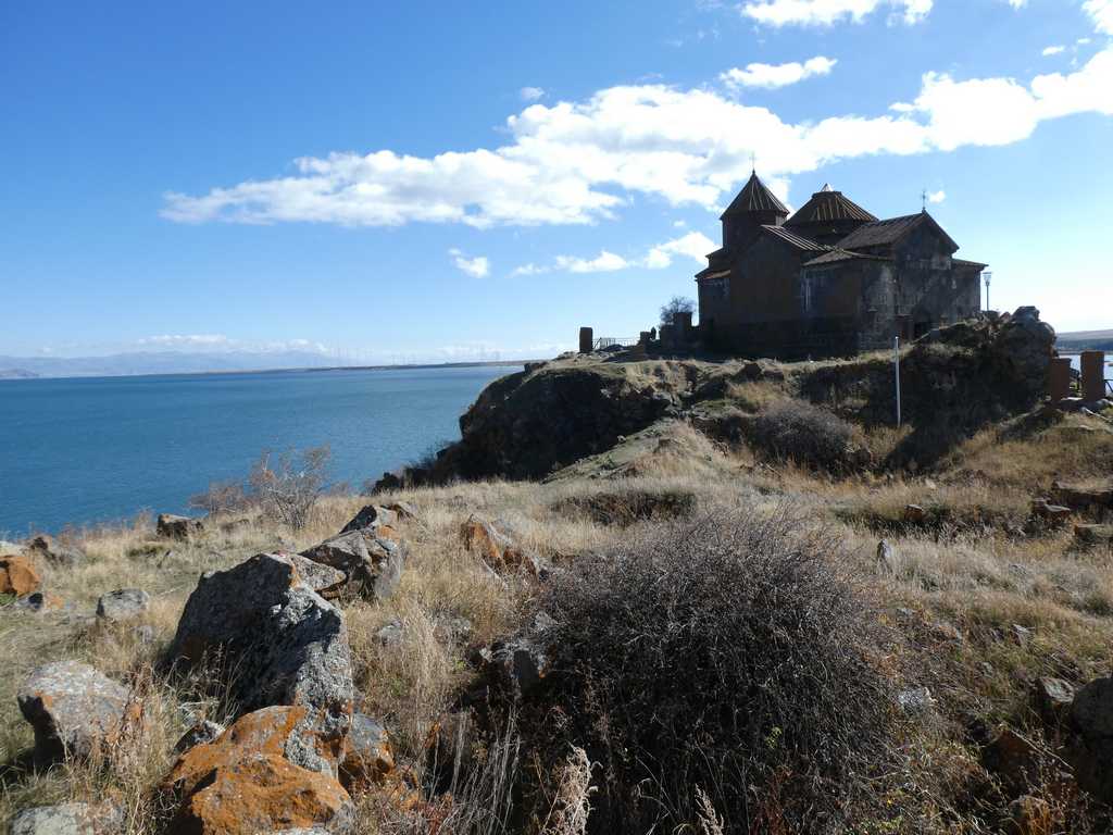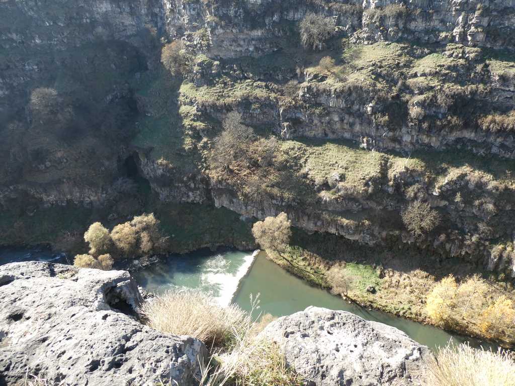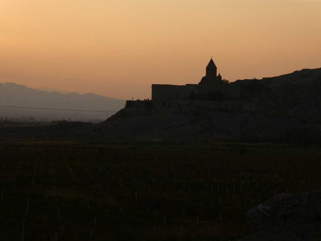 Eine abenteuerliche Schlucht führt durch das Tal des Vorotan zum Kloster Tatev. Die Kurven sind so eng, dass die großen Sattelschlepper kaum umlenken können. Oft ist der Asphalt auch stark beschädigt, so dass sich streckenweise nur Schotter mit riesigen Absätzen ergeben. An den Schleifspuren auf der Straße sieht man: Andere Fahrzeuge haben hier aufgesetzt. Wir fahren die ca. 30 km in etwa 2 Stunden. Oft kann man problemlos neben uns her laufen, so langsam sind wir unterwegs.