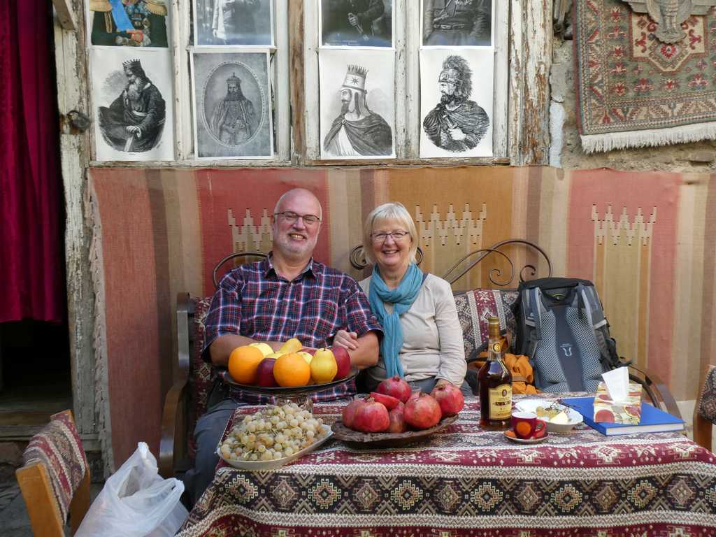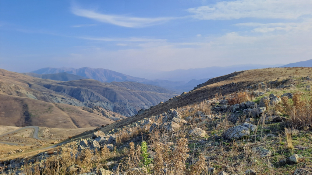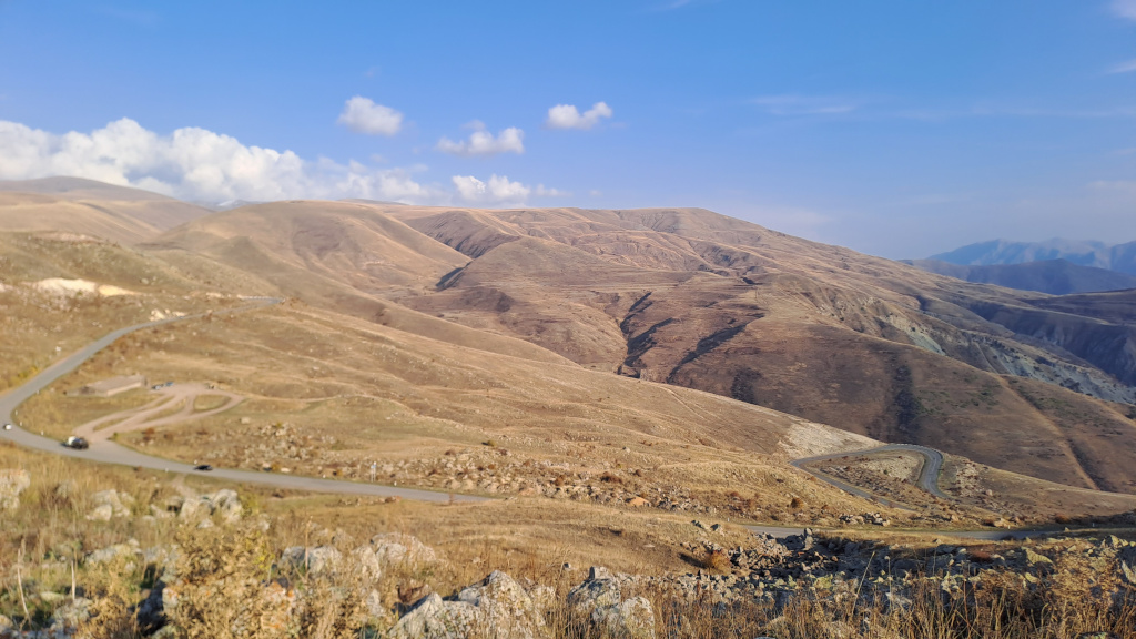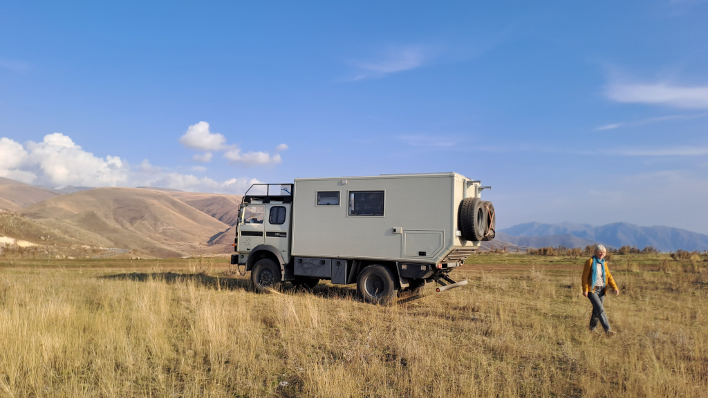 Und die Straße ist sehr dicht befahren. Im Minutentakt kommen lange Sattelschlepper und transportieren Waren von Nord nach Süd und umgekehrt. Es ist die einzige offene Verbindungsstraße Richtung Iran. Die andere verläuft direkt an der aserbaidschanischen Grenze und ist zur Zeit nicht empfehlenswert oder gesperrt. Wir haben diese nicht versucht zu fahren.