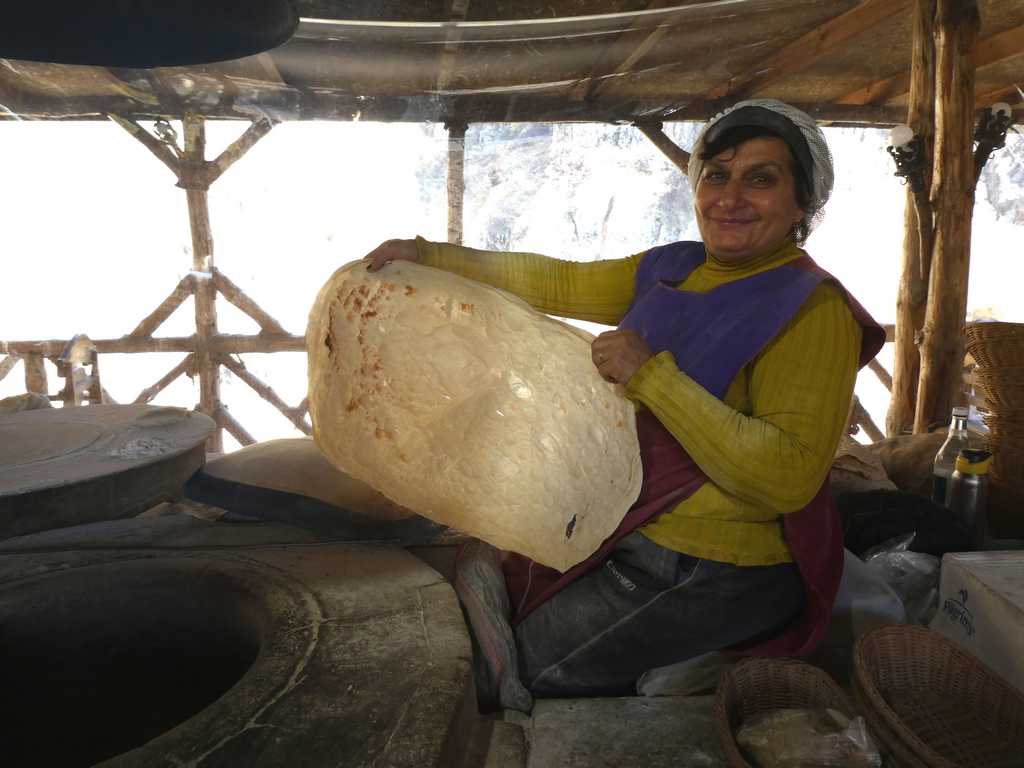 Es wird traditionell aus Mehl, Wasser und Salz hergestellt und an der Innenwand eines von unten beheizten, großen Tonkruges gebacken. Dabei wird der Fladen ganz dünn ausgerollt und dann auf ein mit Stoff bespanntes Brett gelegt und mit Schwung an die Innenwand des Ofentopfes geworfen.