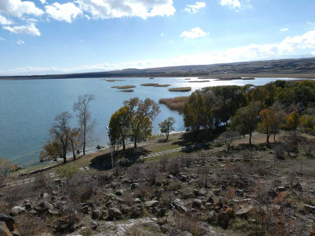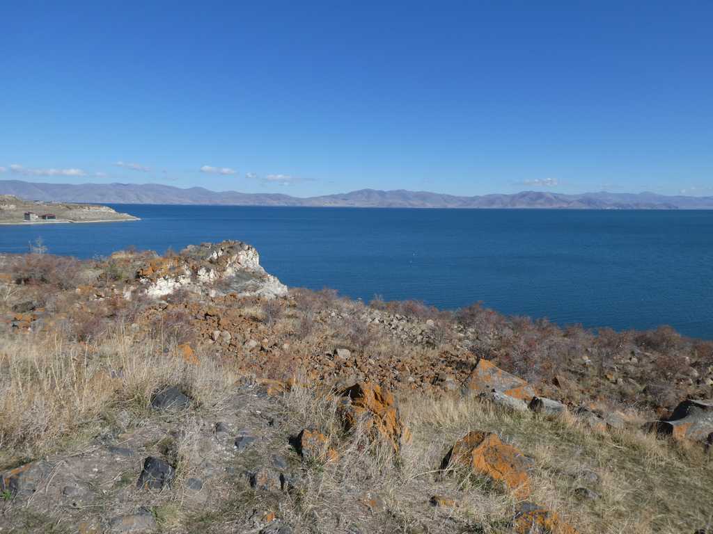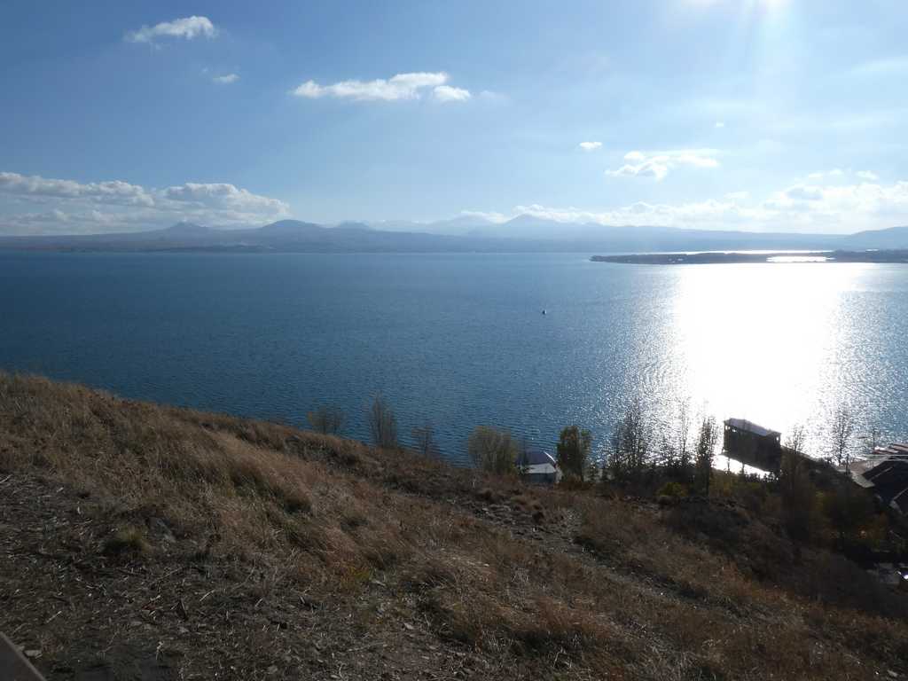 Das Gebiet ist sehr trocken und wenig bewachsen. Vom See sehen wir nur in einiger Entfernung einen Rest. Sicher muss sich das Reservoir über den Winter erst wieder richtig füllen.