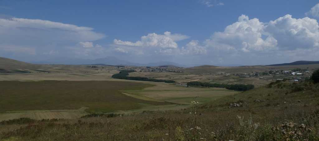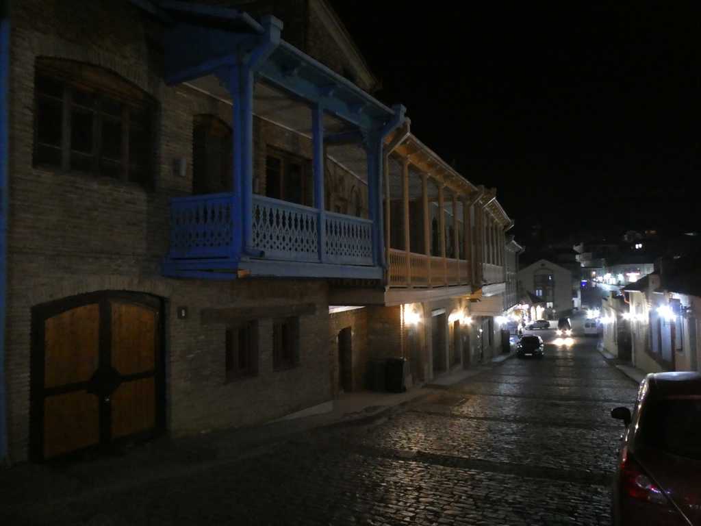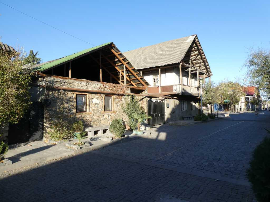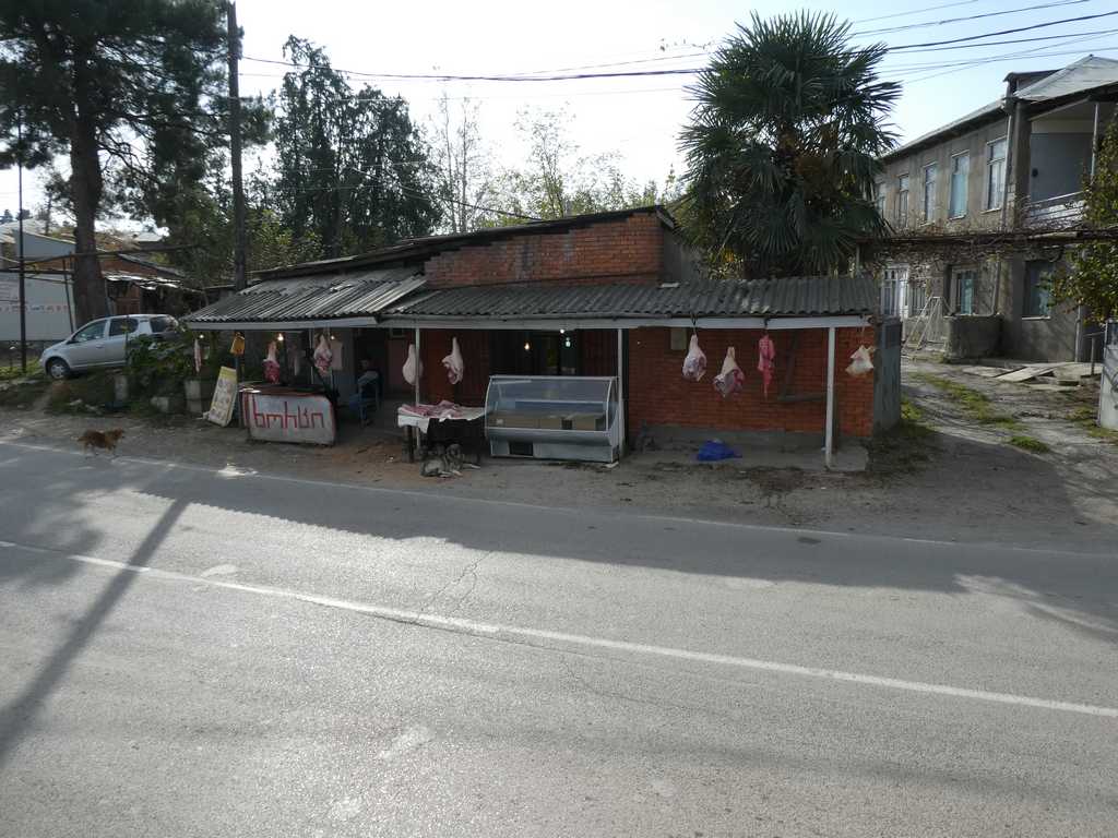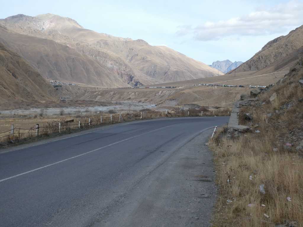 Das Ortseingangsschild ist zweisprachig. Die georgische Schriftsprache ist doch so unbekannt für uns. Und wir sind froh über die lateinische Übersetzung, sonst könnten wir nichts lesen.