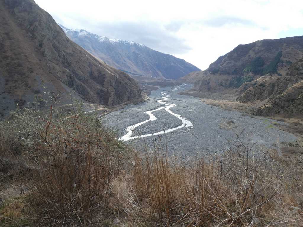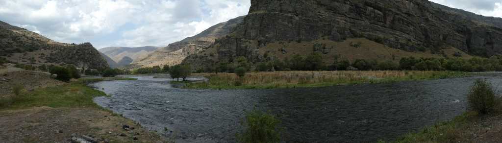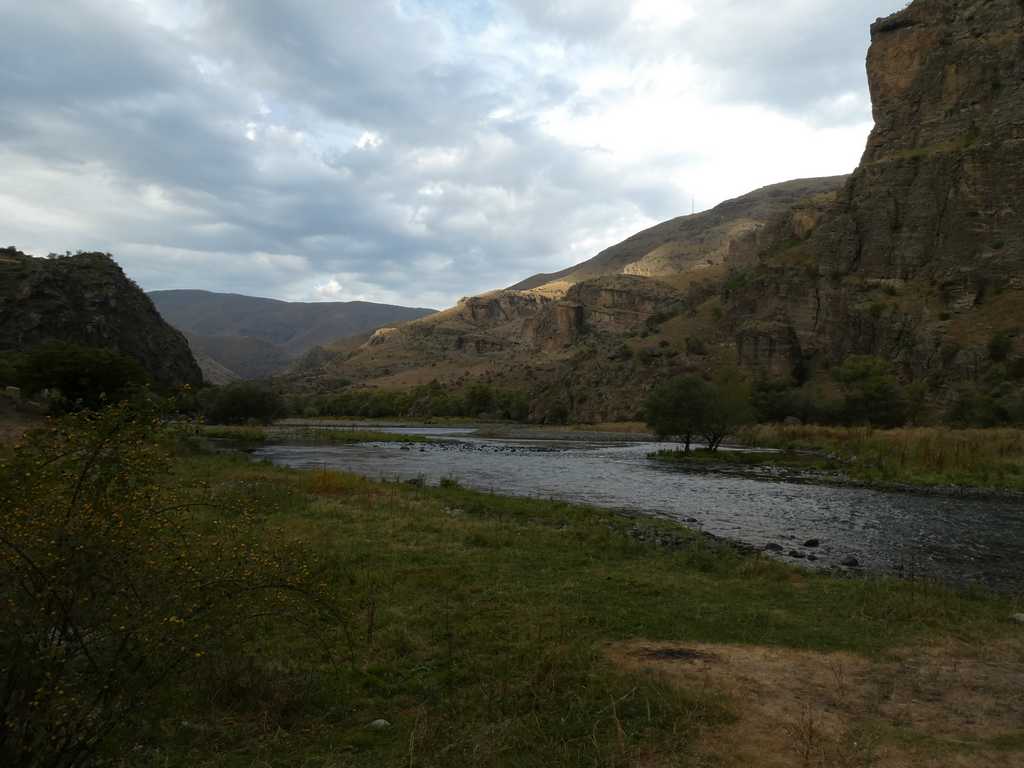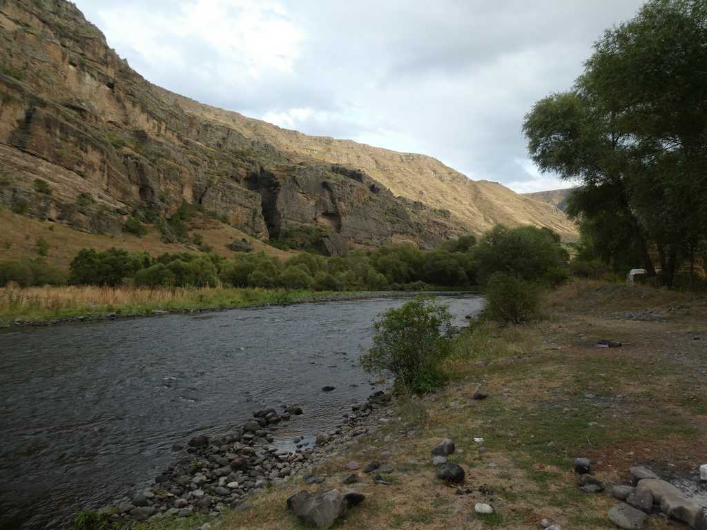 Diese Landschaft könnte auch in den Alpen liegen. Und ganz vergleichbar ist hier auch das Klima. Es ist gemäßigt und sommerlich warm. Genau richtig für einen Ruhetag am Fluss.