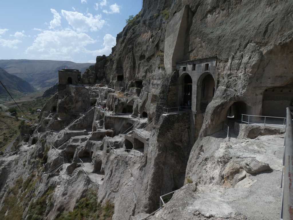 In dem kleinen Dorf Vardzia sind heute noch die vielen Hundert Höhlen der einstigen Höhlensiedlung zu besichtigen. Steil in der Felswand sind unzählige Räume aus dem Fels geschlagen und dienten früher als Wohn- und Zufluchtsort für bis zu 50.000 Bewohner. Beeindruckend.