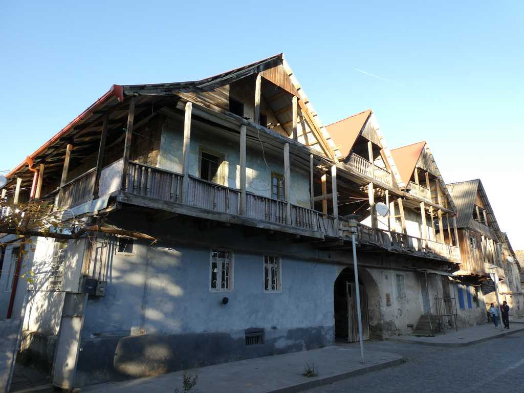 Die umlaufenden Balkone erinnern uns sehr auch an die Berghöfe in den österreichischen Alpen. Leider sind alle Häuser in einem bedauernswerten Zustand. Es wohnen wohl nur noch die Nachkommen einer deutschen Familie im Ort. Alle anderen sind zwangsumgesiedelt worden und schließlich wieder nach Deutschland ausgewandert.