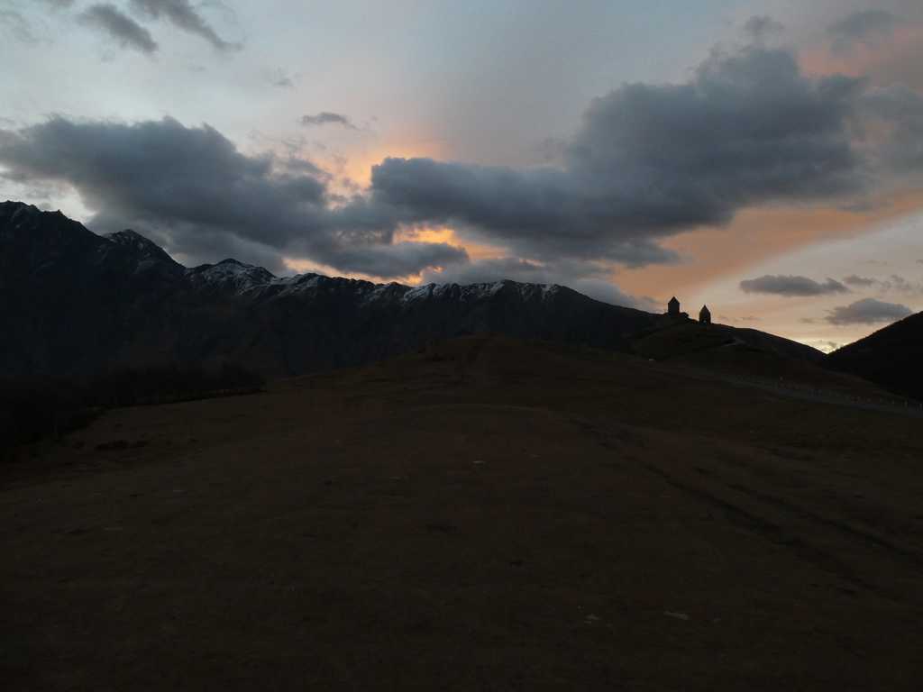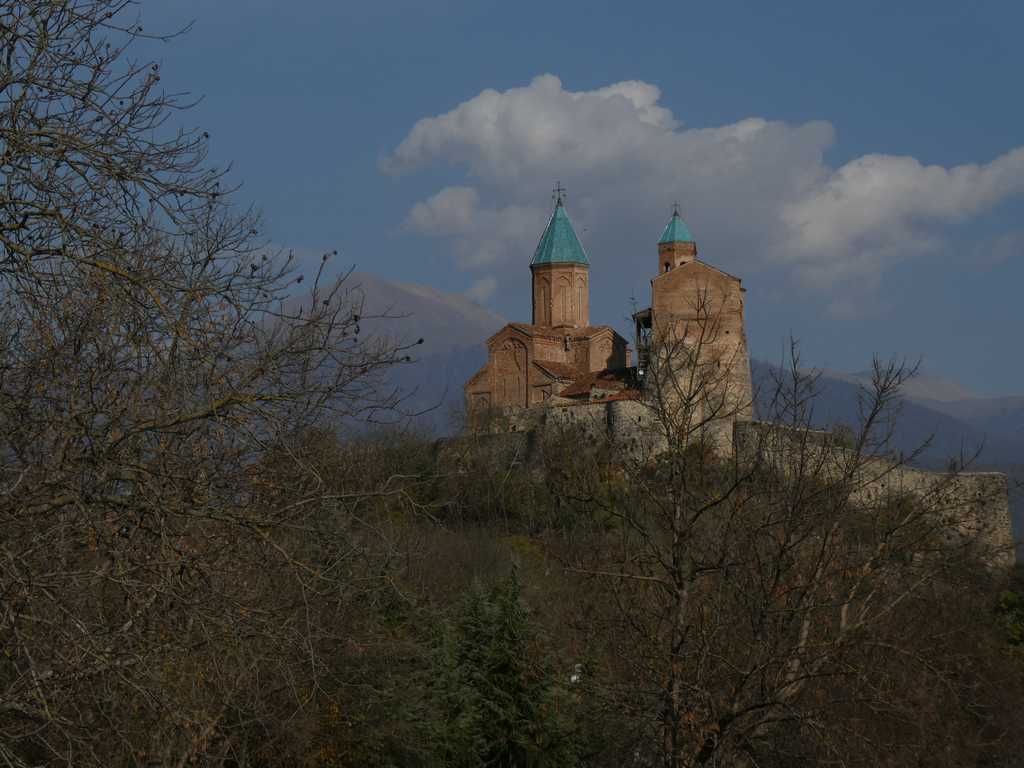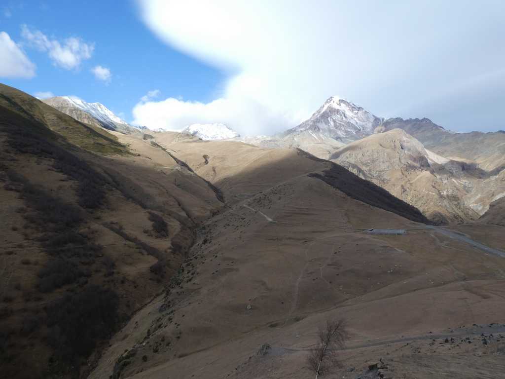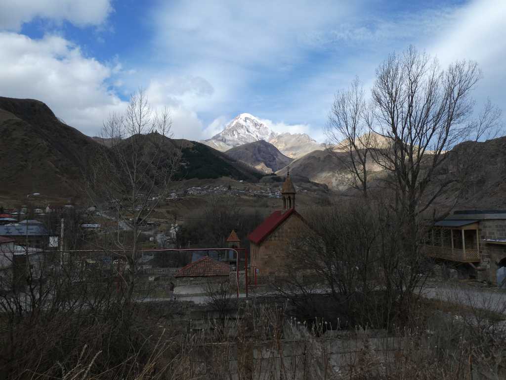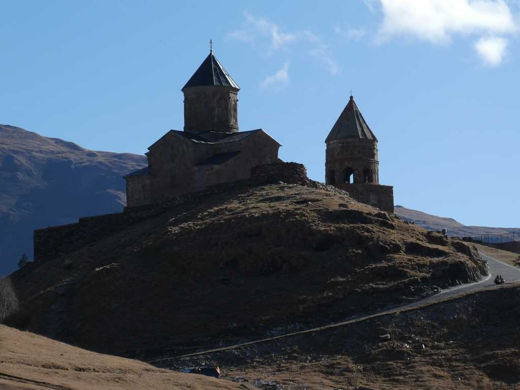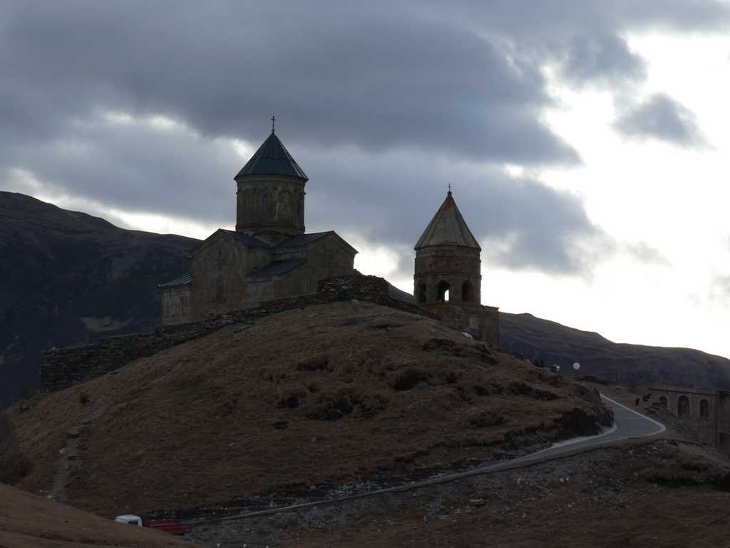 Am Fuße des Kasbek (5047) machen wir einen Tag Rast und besichtigen die Dreifaltigkeitskirche in der Nähe von Stepanzminda.
