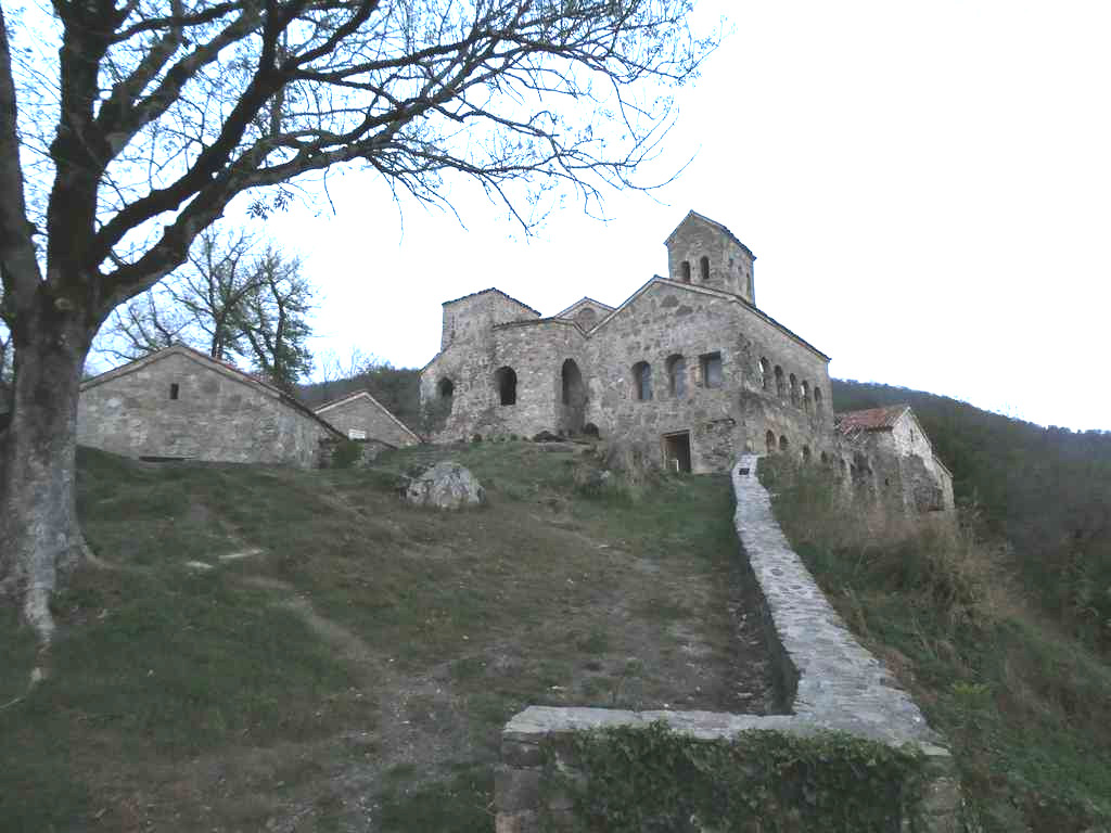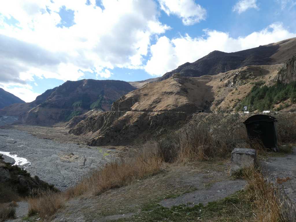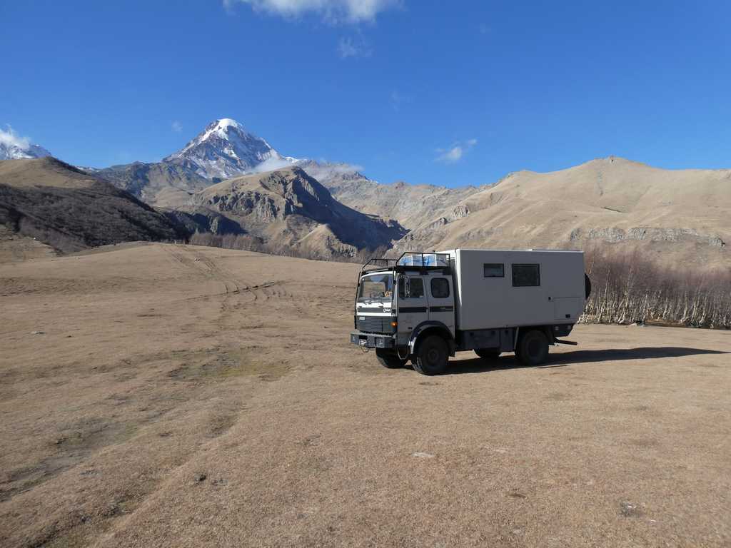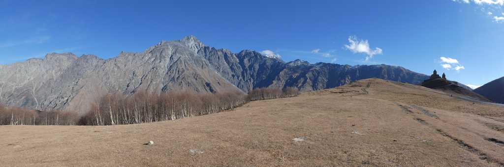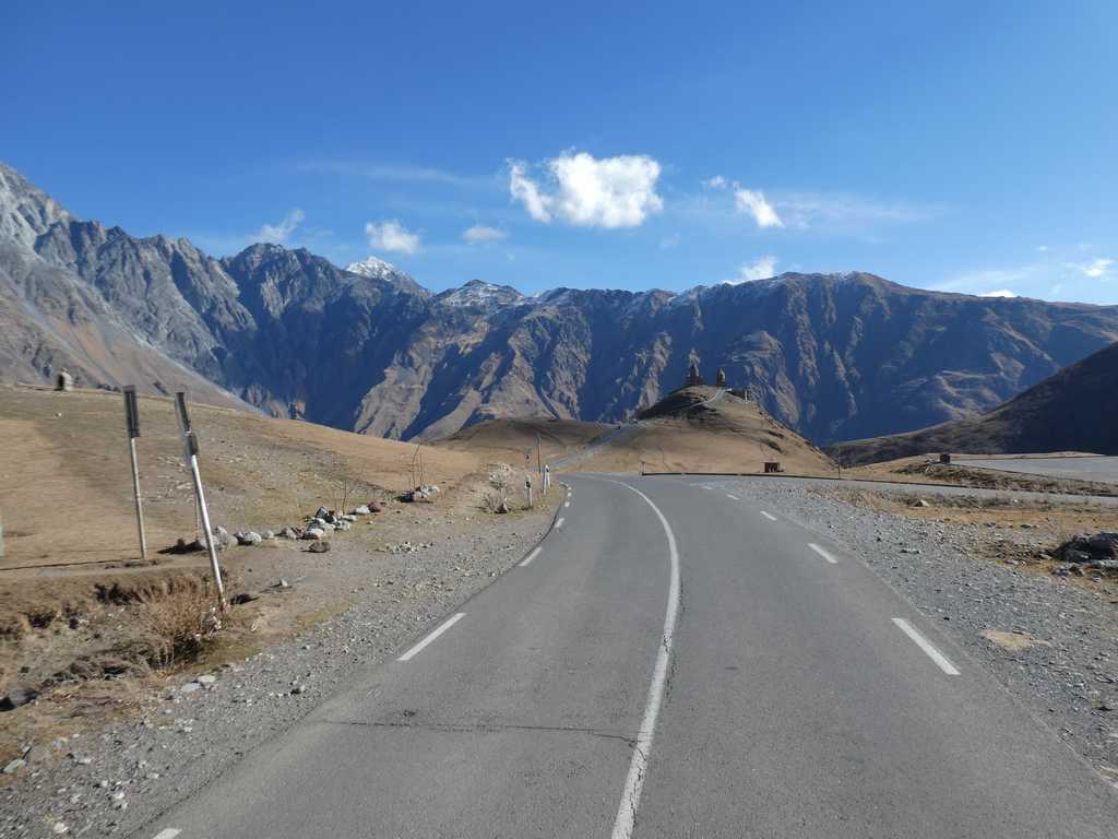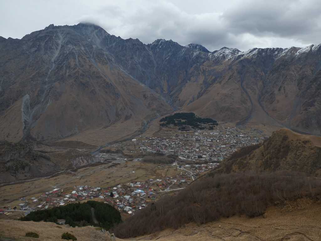 Am Fuße des Kasbek (5047) machen wir einen Tag Rast und besichtigen die Dreifaltigkeitskirche in der Nähe von Stepanzminda.