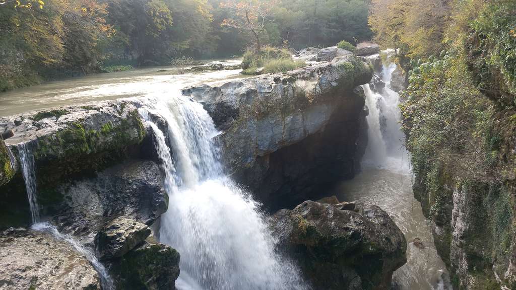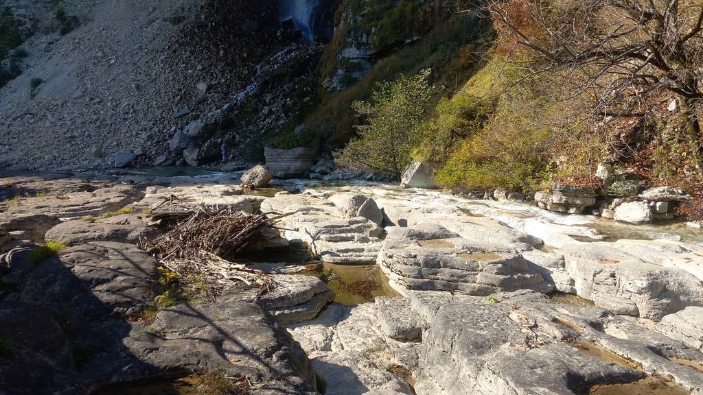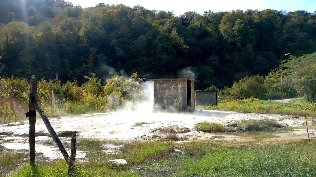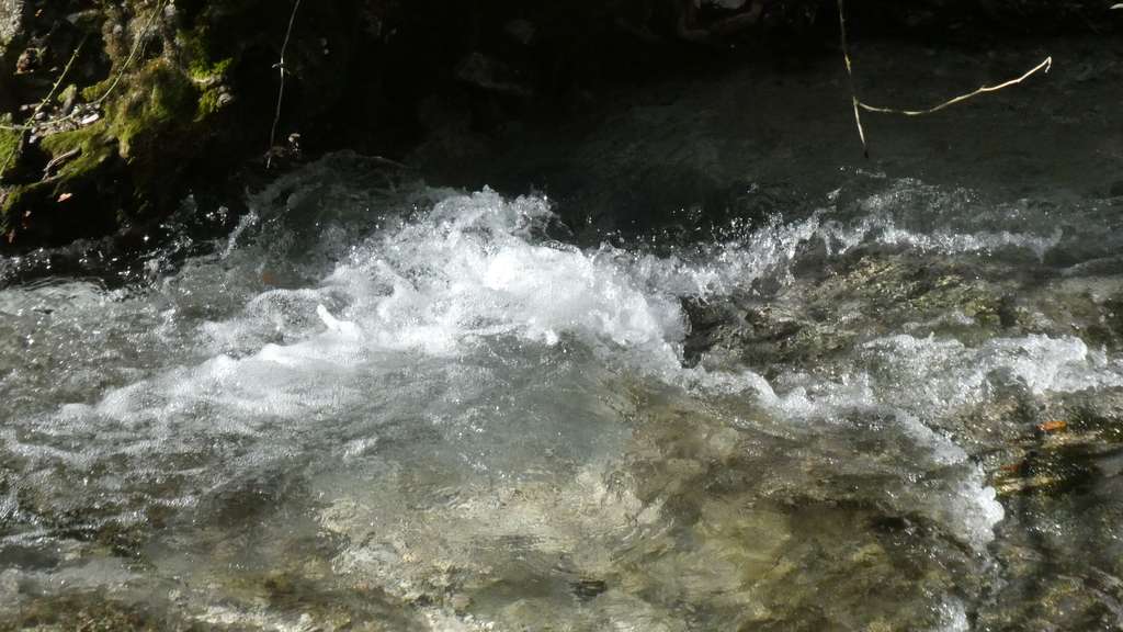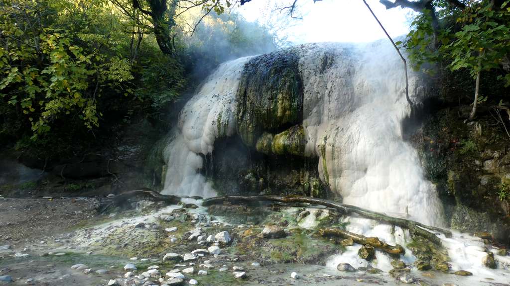 Unterhalb der Quelle rinnt das Wasser über einen Abhang und wird in einem kleinem offenen Mineralbad mit drei Becken aufgefangen. Man muß im letzten Becken beginnen, sonst ist auch hier das Wasser noch nicht kalt genug. Nach ein paar Minuten kann man sich dann ins mittlere Becken vorwagen. Das hat uns dann schon ausgereicht - es war einfach zu warm.