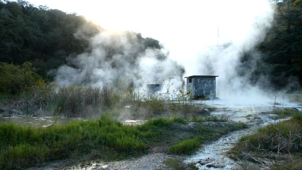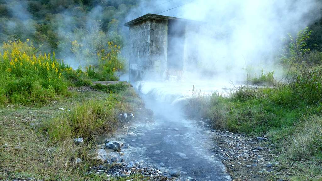 Das Mineralwasser kommt mit weit über 40 °C aus der Erde. Da darf man die Hände nicht zum Testen hineinstecken.