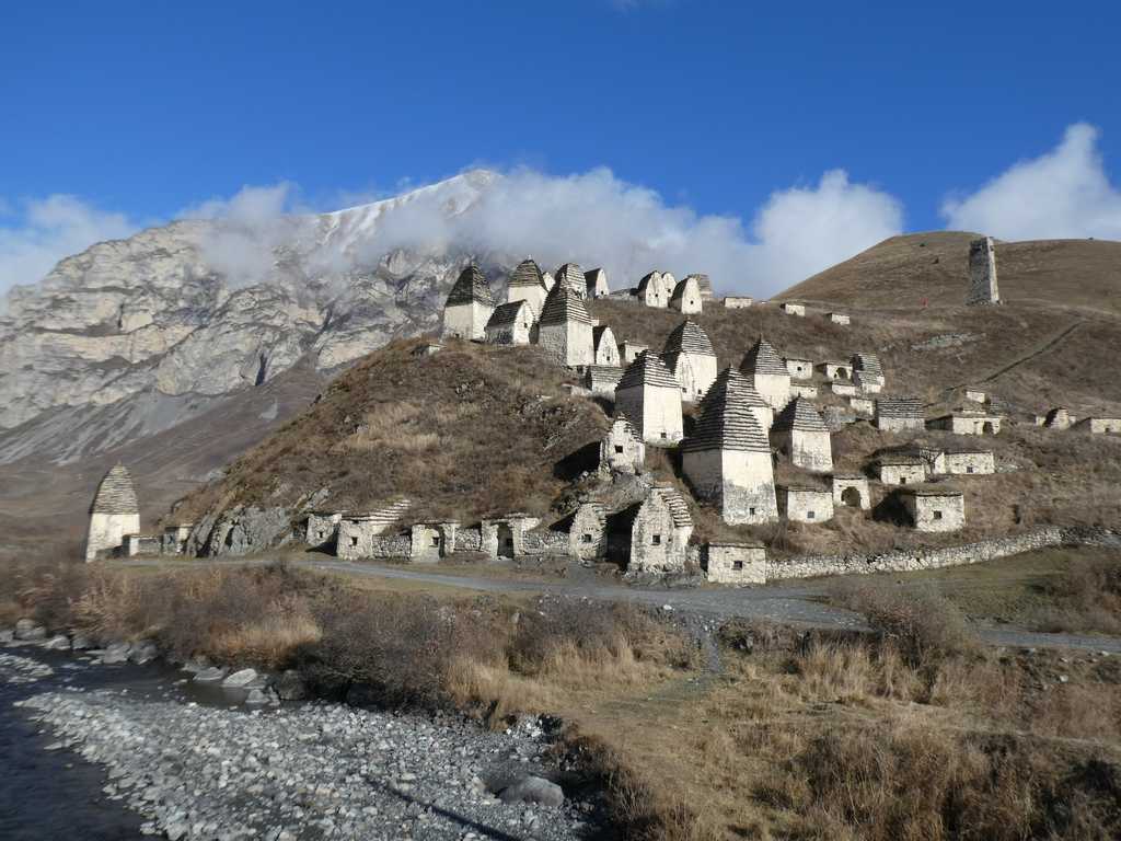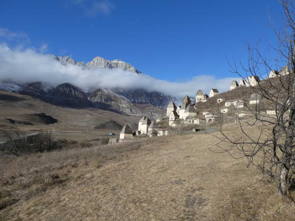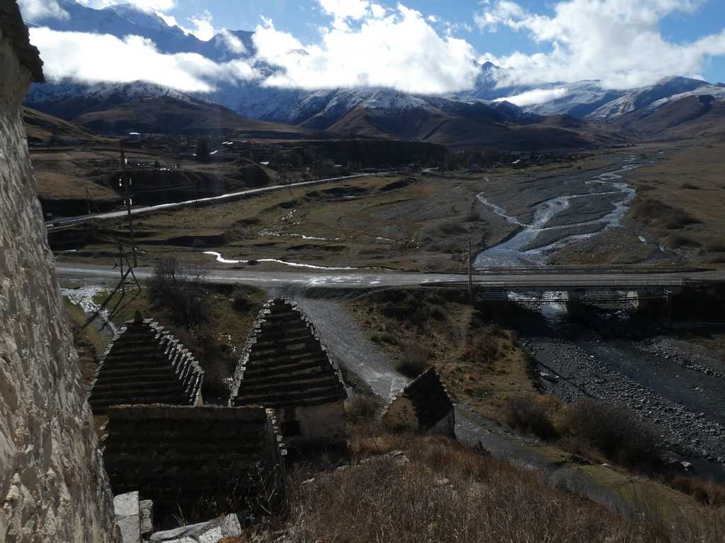 Oben angekommen, eröffnet sich uns eine breite Hochebene mit einem herrlichen See. Am Ende dieses Tales liegt Dargavs. Dort haben die Bewohner ihre Toten in kleinen Steinhäusern bestattet, die sich zu einer ganzen "Stadt" entwickelt haben.