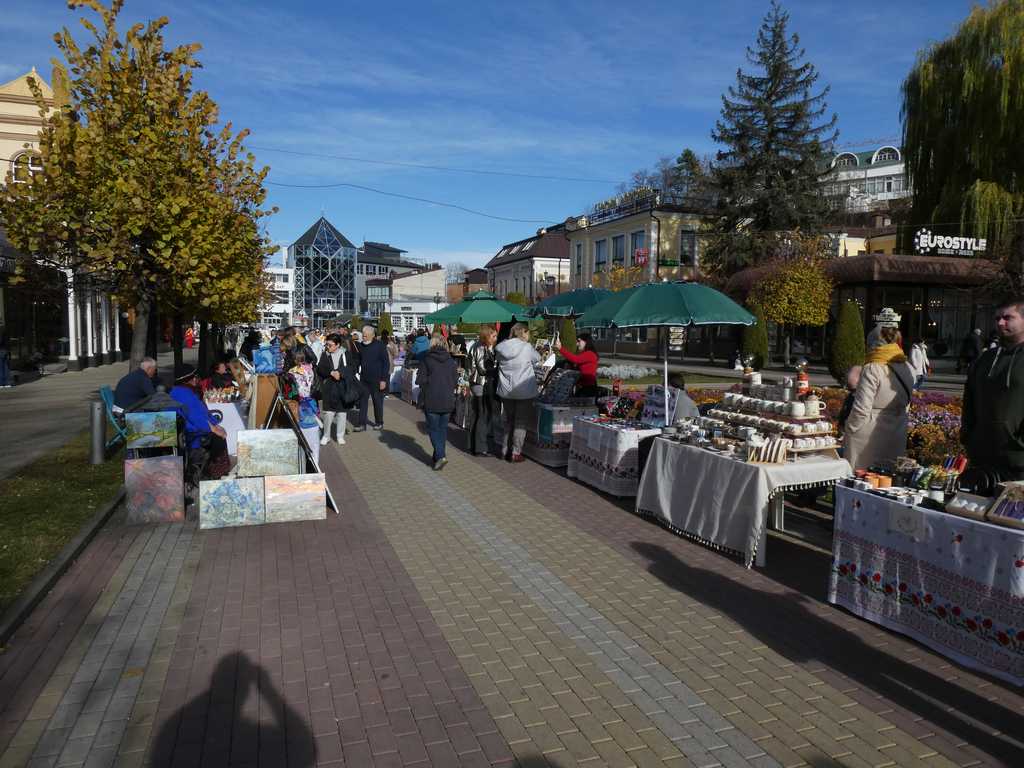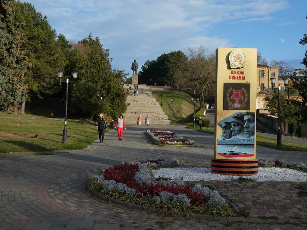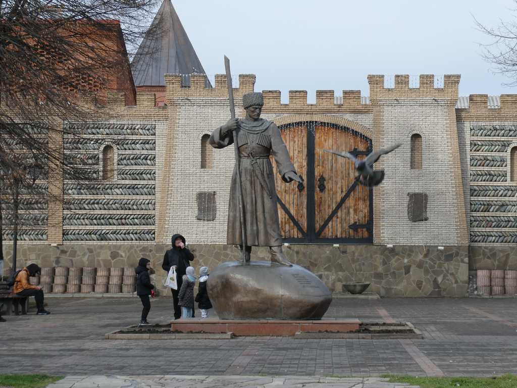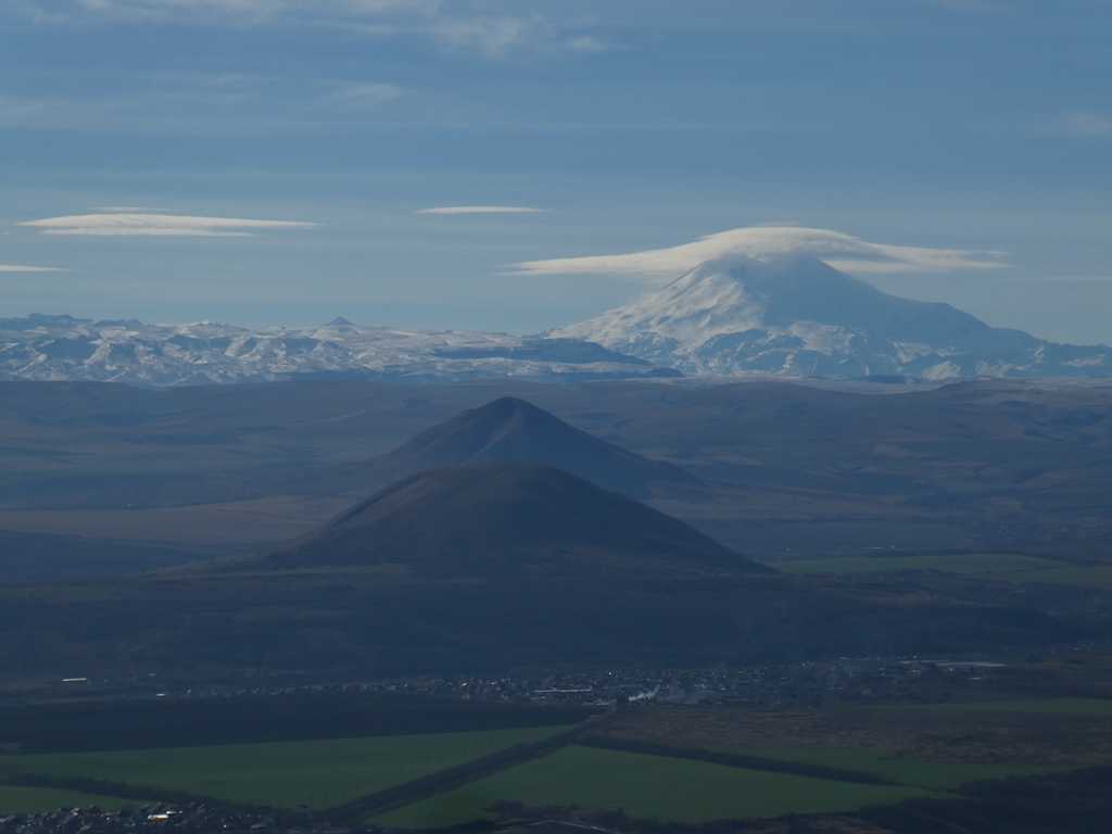 Mit der Seilbahn "erklimmen" wir den Hausberg. Oben angekommen eröffnet sich uns ein phantastischer Blick ins Umland bis hin zum Kaukasus. Auch der höchste Berg, der Elbrus, grüßt uns mit seiner Wolkenkappe.