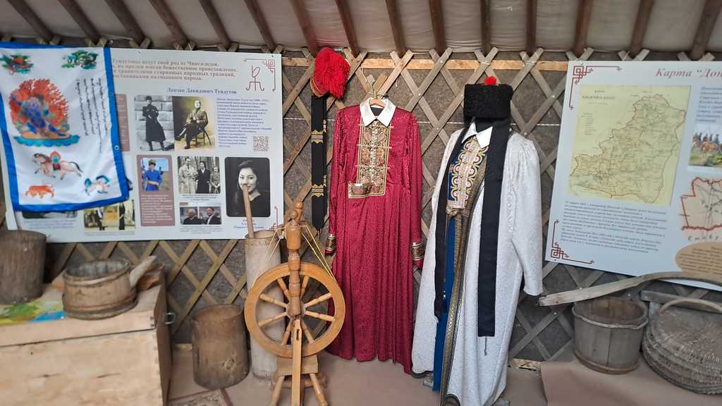 Im Museum erhalten wir einen ersten Eindruck auf das frühere, nomadische Leben der Kalmüken. In den typischen Jurten sind Einrichtungsgegenstände, Kleidung und Instrumente zu sehen.