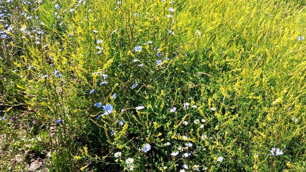 Ein-Einhalb Jahre später - Wieder in Russland: Unsere erster Halt hinter der Grenze am Rande eines Dorfes am Fuße des Altai umgeben von bunt blühenden Wiesen