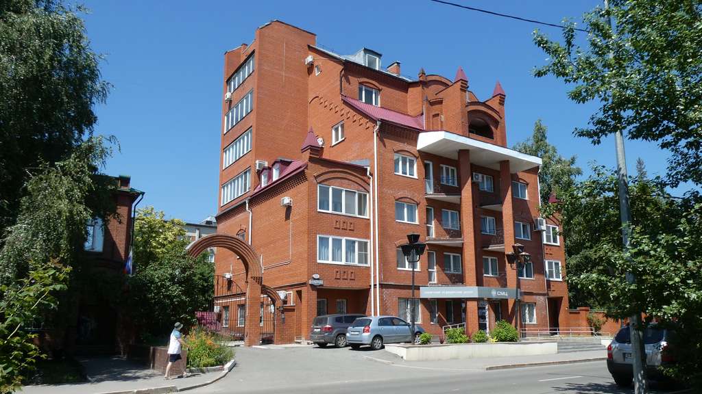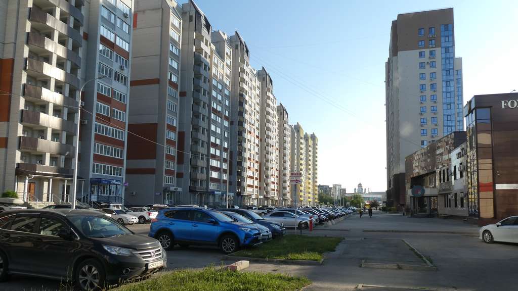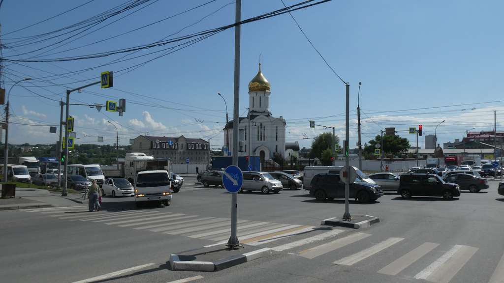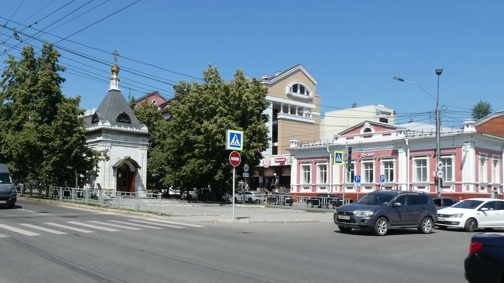 Die kleine Nikolai-Kirche mitten auf dem Roten Prospekt steht wohl direkt auf dem Mittelpunkt Russlands