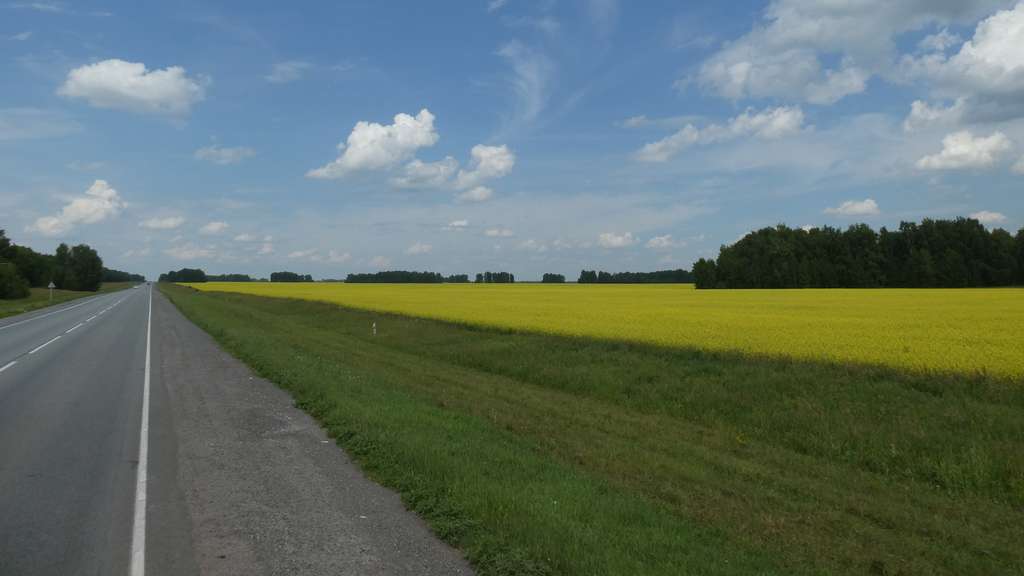 Und weiter geht's nach Novosibirsk - Endlos weite Felder und Birkenwäldchen begleiten uns über mehrere Stunden