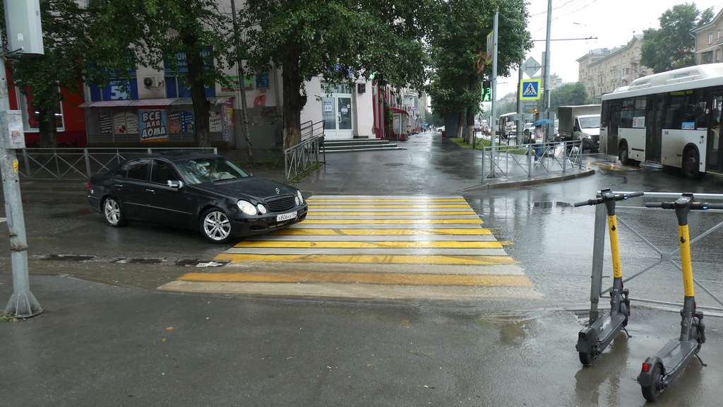 Durch den Starkregen sind die Straßen teilweise überflutet. Abflüsse zur Kanalisation sind selten und so ziehen sich breite Bäche an den Straßen entlang. Wenn Autos durch diese fahren, wird das Wasser in hohem Bogen auf den Fußweg oder die Gegenfahrbahn gespritzt. Da ist man als Fußgänger schon froh, wenn man dort nicht gerade unterwegs ist.