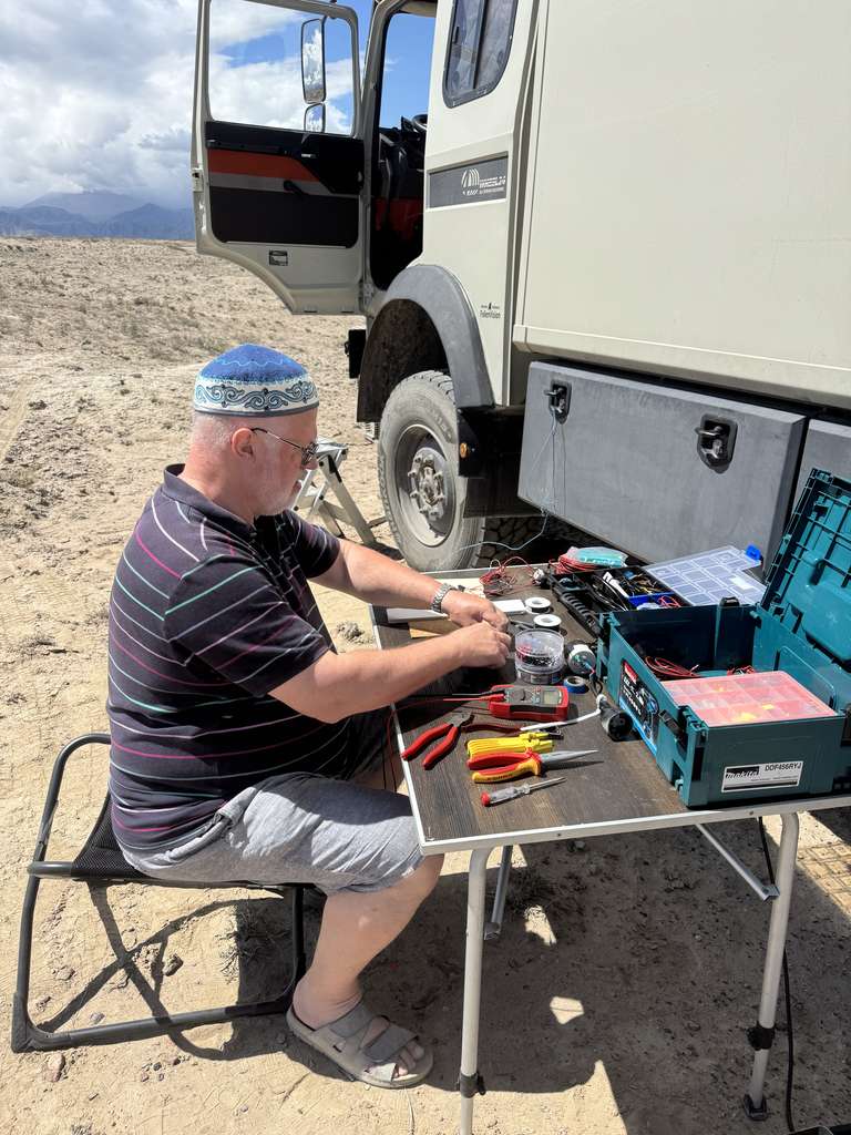 Dieses "notdürftig fahren" dauerte dann doch fast zwei Monate in Kirgistan, bis wir endlich die Muse und Zeit fanden, uns an den Umbau zu wagen. Wie lange oft so ein Provisorium halten muß.