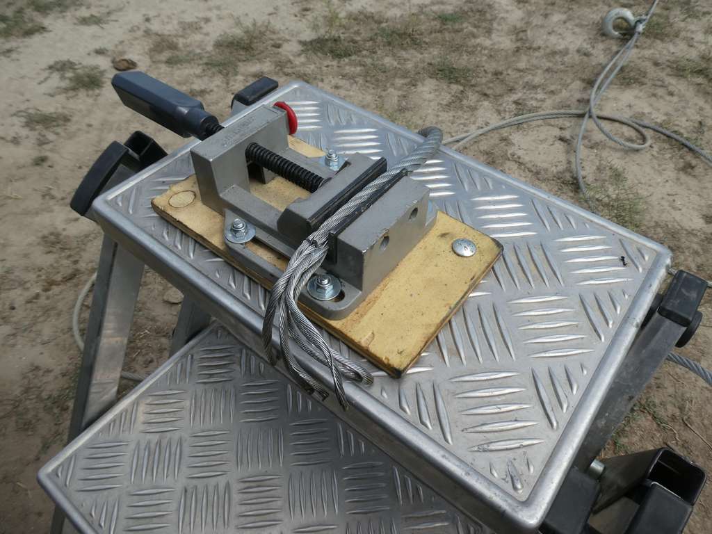 Mit Hilfe einer kleinen Stufenleiter und einem Maschinenschraubstock habe ich immer einen unentbehrlichen Helfer mit dabei.