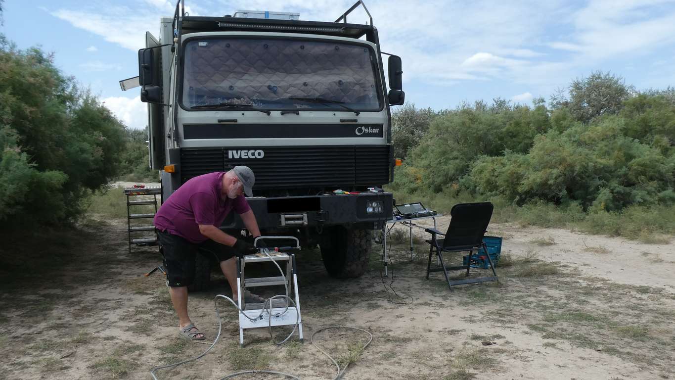 Bei unserer Rast südlich von Astrakhan war nun die fällige Reparatur dran.