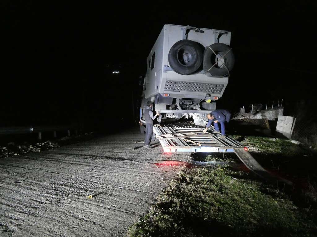 Und so hieß es dann nur noch Warten auf den Abschleppwagen. Zum Glück hatten wir viel Unterstützung, zuerst von der Polizei, später dann auch von einigen Georgiern, die sich immer erkundigten, ob wir Hilfe bräuchten. Der Abschlepper kam nach 6 Stunden aus der Kreisstadt und da war es schon dunkel.