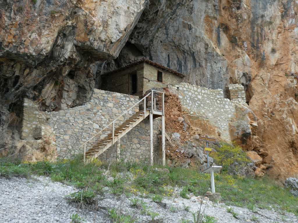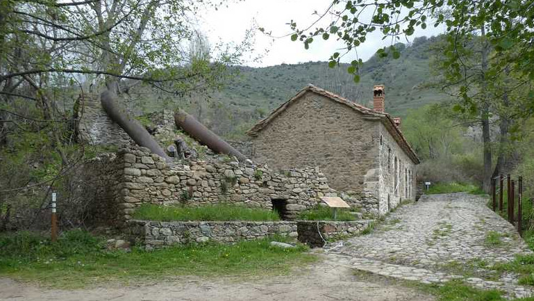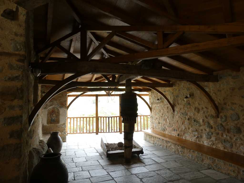 Erster Besichtigungsort ist Agios Germanos mit seiner kleinen Kirche aus dem späten 10. Jh. Ca. 500 Meter vom Ort entfernt entdecken wir eine in Rekonstruktion befindliche alte Wassermühle. Diese wurde über vier gewaltige Röhren mit Wasser versorgt und so vier Wasserräder angetrieben. Getreidemühlen und ein Pochwerk waren früher hier in Betrieb.