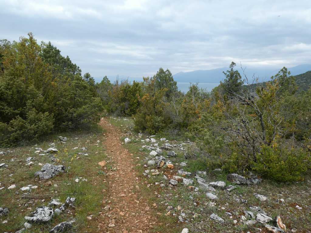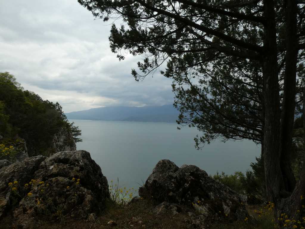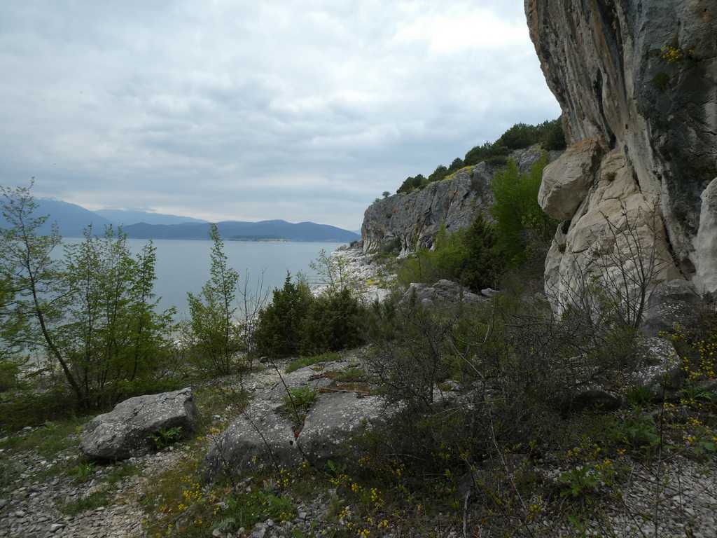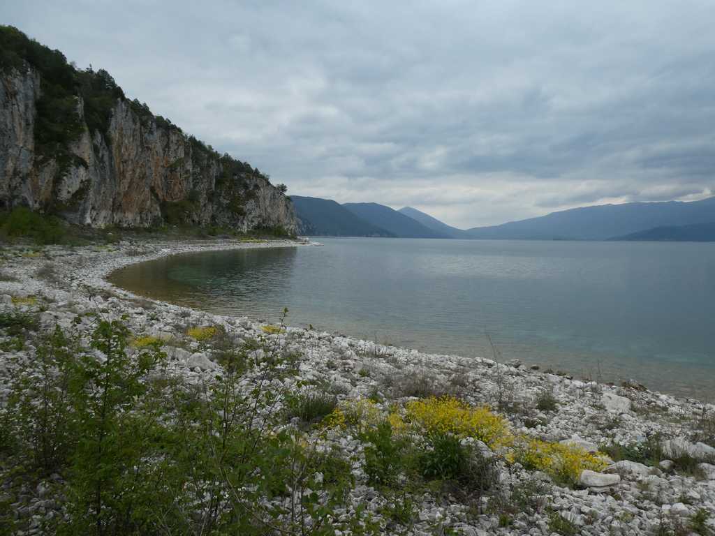 Eine schöne, kurze Nachmittagswanderung auf einem Bergrücken einer Landzunge im Großen Prespa-See. Zur Ermitage müssen wir dann steil zum Seeufer absteigen. Der feuchte Lehm ist an manchen Stellen sehr rutschig. Da heißt es aufpassen! Doch wir haben ja einige Bergerfahrung und wissen uns zu helfen.