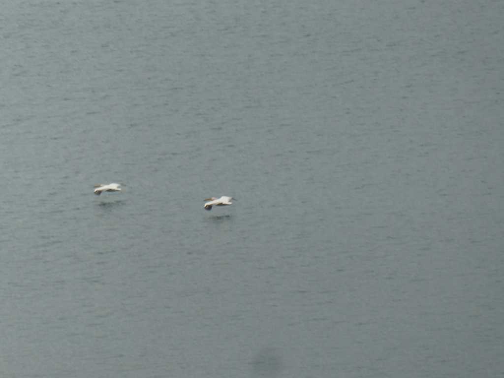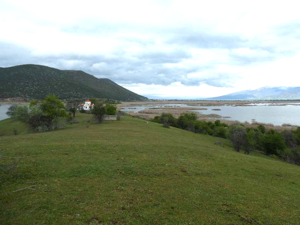 Die bergige Landschaft überrascht uns sehr, ist doch in unserer Vorstellung bisher Griechenland ein flacher, sommerlich warmer Landstrich am Mittelmeer gewesen. Doch wir müssen unsere Vorstellungen über die für uns bisher fremden Länder wie so oft wieder revidieren. Schroffe Gebirge wechseln sich mit flachen Ebenen in Seenähe ab. Südlich des Großen Prespa-Sees schließt sich noch der Kleine Prespa-See an. Dieser ist durch einen kleinen Kanal mit dem Großen Prespa-See verbunden. Ein Paradies für Wasservögel.