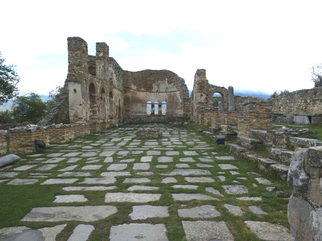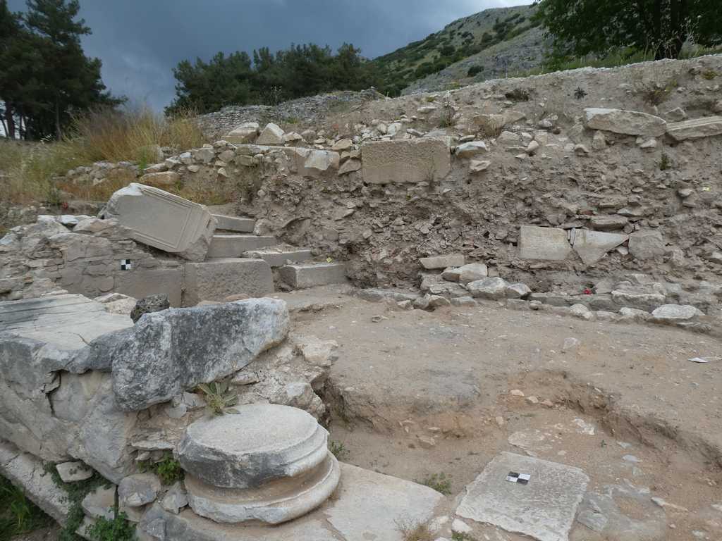 Oben auf dem Hügel sind die Grundmauern mehrerer byzantinischer Basilika zu sehen. Allein die Größe der bebauten Fläche ist überaus beeindruckend.