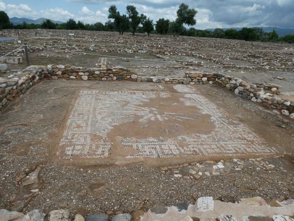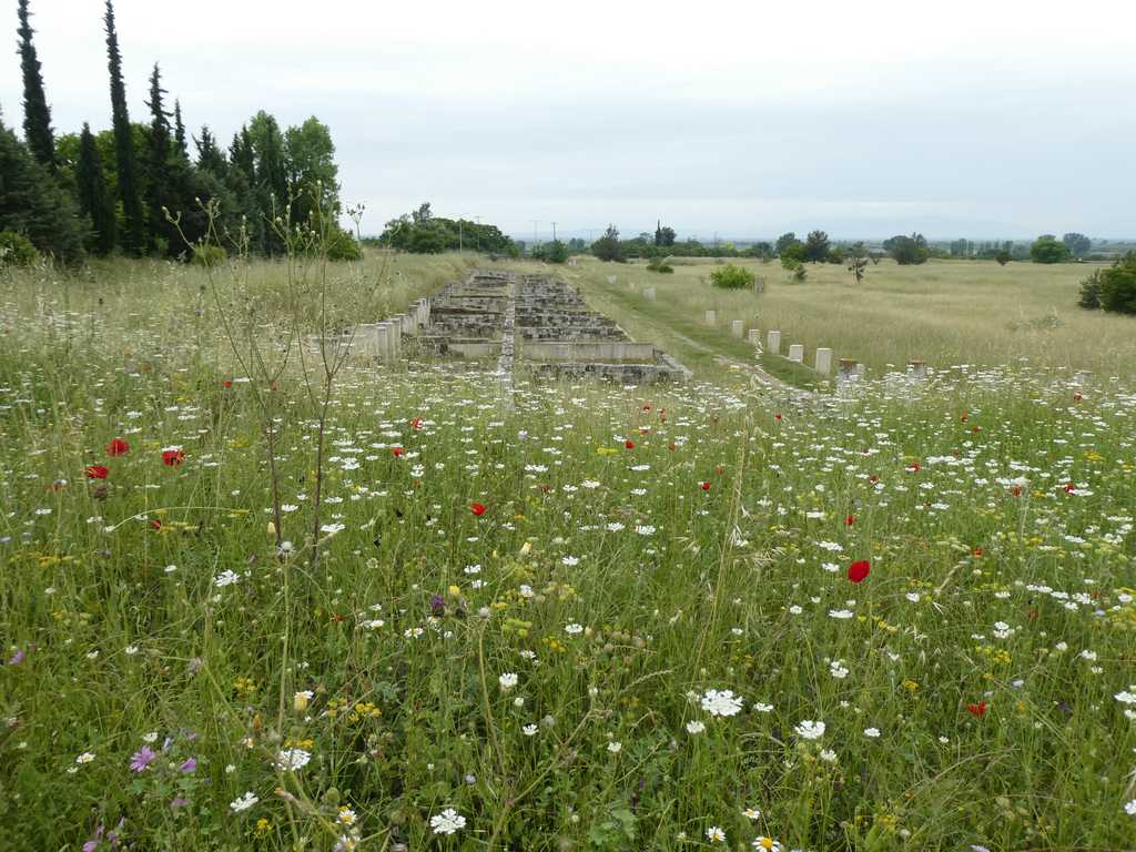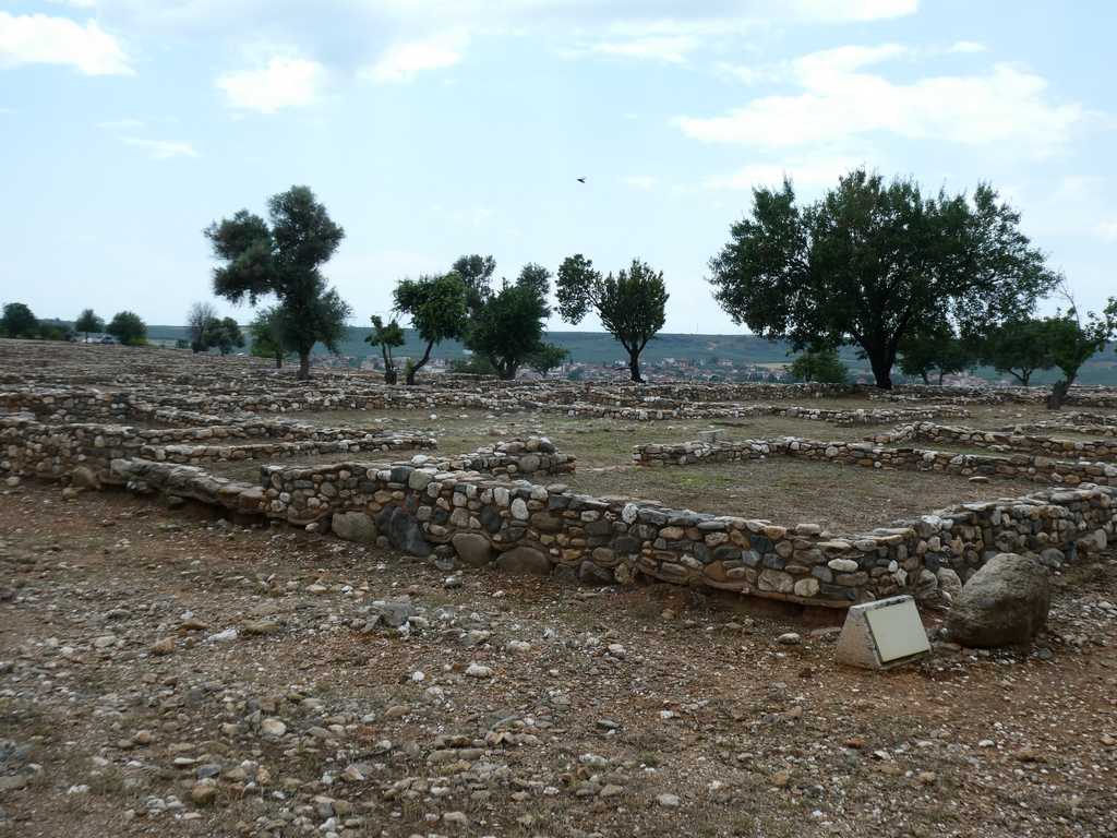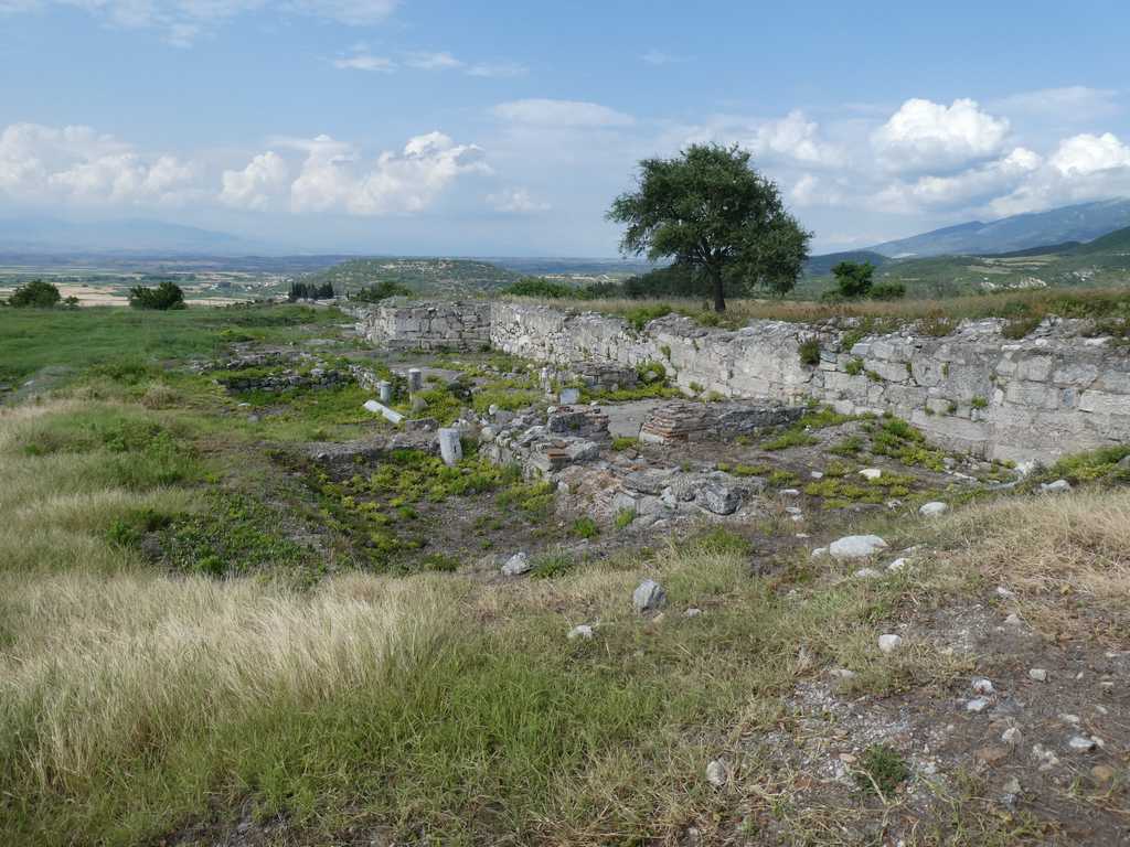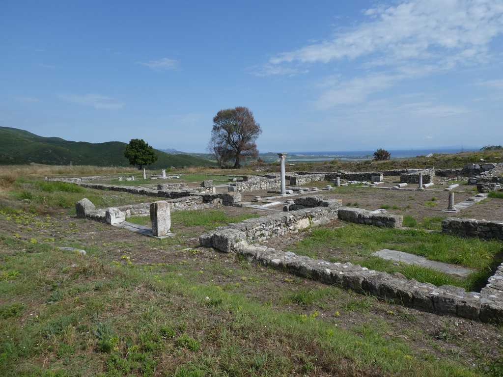 Die ehemalige Stadt Olynth (heute Olinthos) war auf einem Doppelhügel kurz vor der Küste zur Ägäis gelegen. Wir sind überwältigt von der weitflächigen Bebauung. Die Grundmauern lassen die Größe der einzelnen Häuser, der Straßen und Wasserkanäle erahnen.