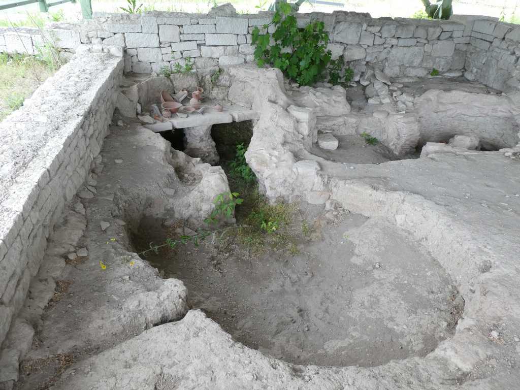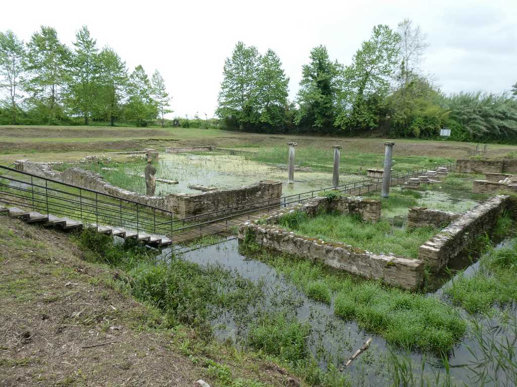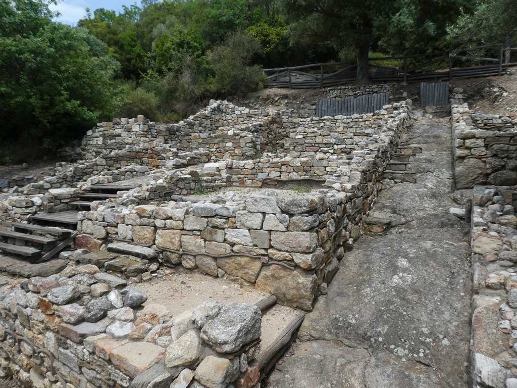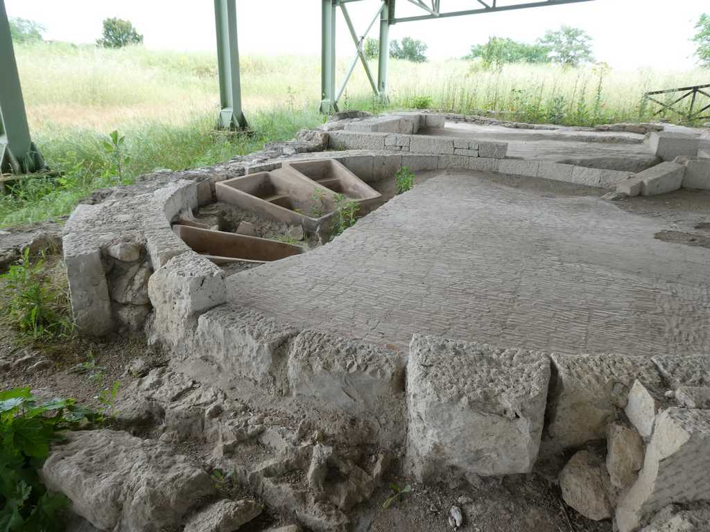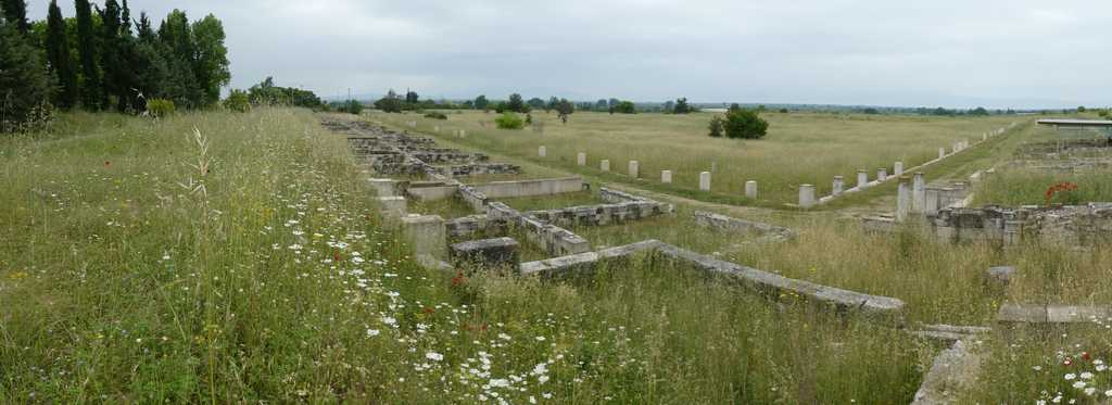 Die ehemalige Stadt Olynth (heute Olinthos) war auf einem Doppelhügel kurz vor der Küste zur Ägäis gelegen. Wir sind überwältigt von der weitflächigen Bebauung. Die Grundmauern lassen die Größe der einzelnen Häuser, der Straßen und Wasserkanäle erahnen.