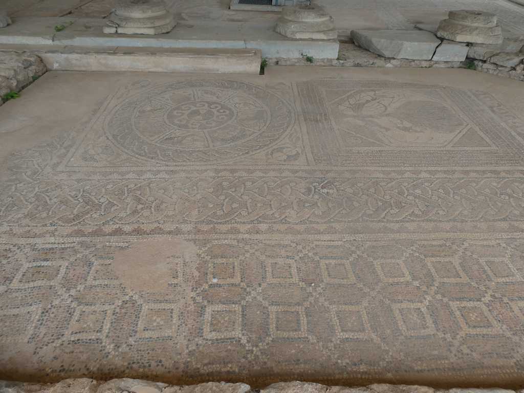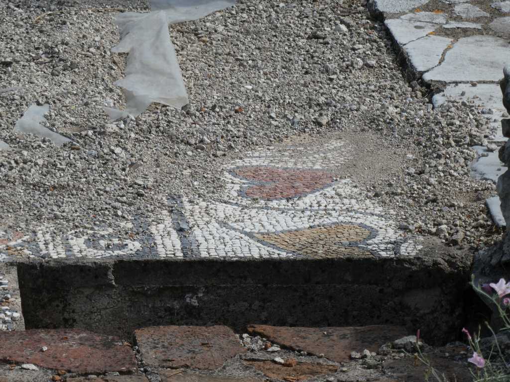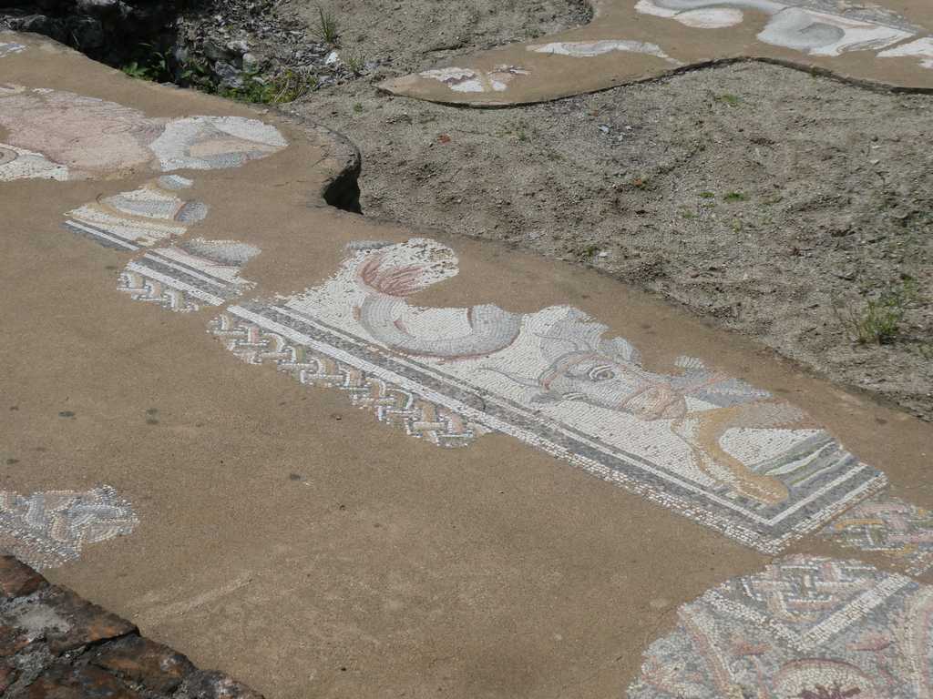 Einige der in den Häusern verlegten Mosaiken sind wieder sichtbar. Sehr detailgetreu wurden Gesichter von Personen, Tiere und Pflanzen dargestellt.