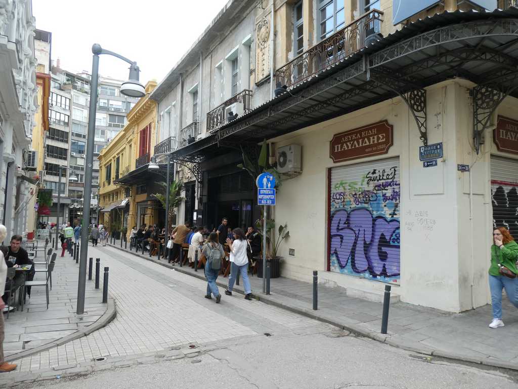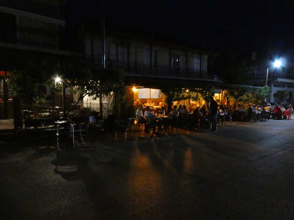Wir suchen uns das bestgefüllteste Lokal und finden sogar dort noch zwei Plätze und tun es den Einheimischen nach. Nur den Tsipouro lassen wir weg. Eigentlich schade.