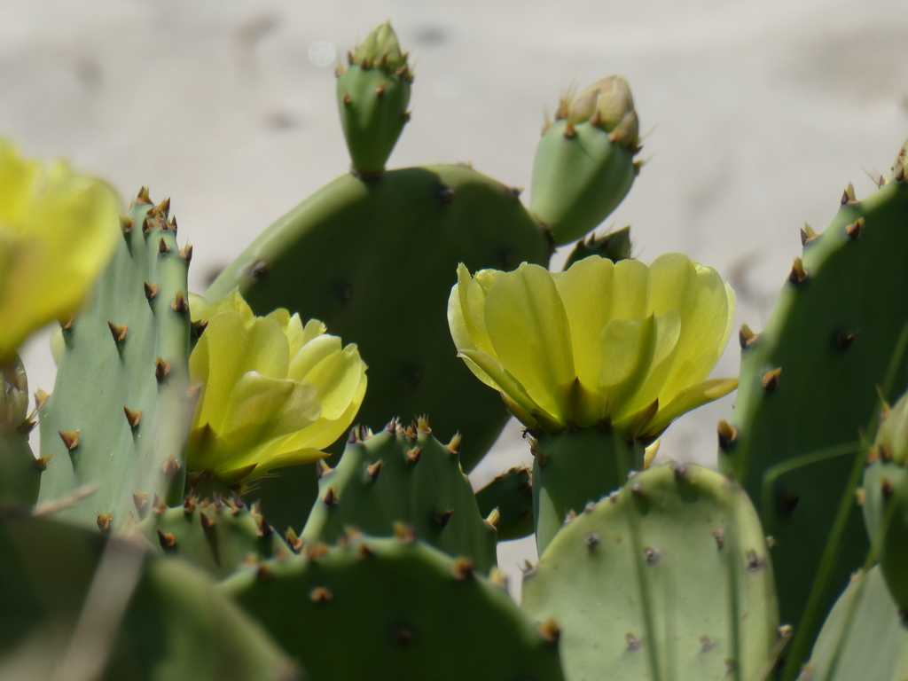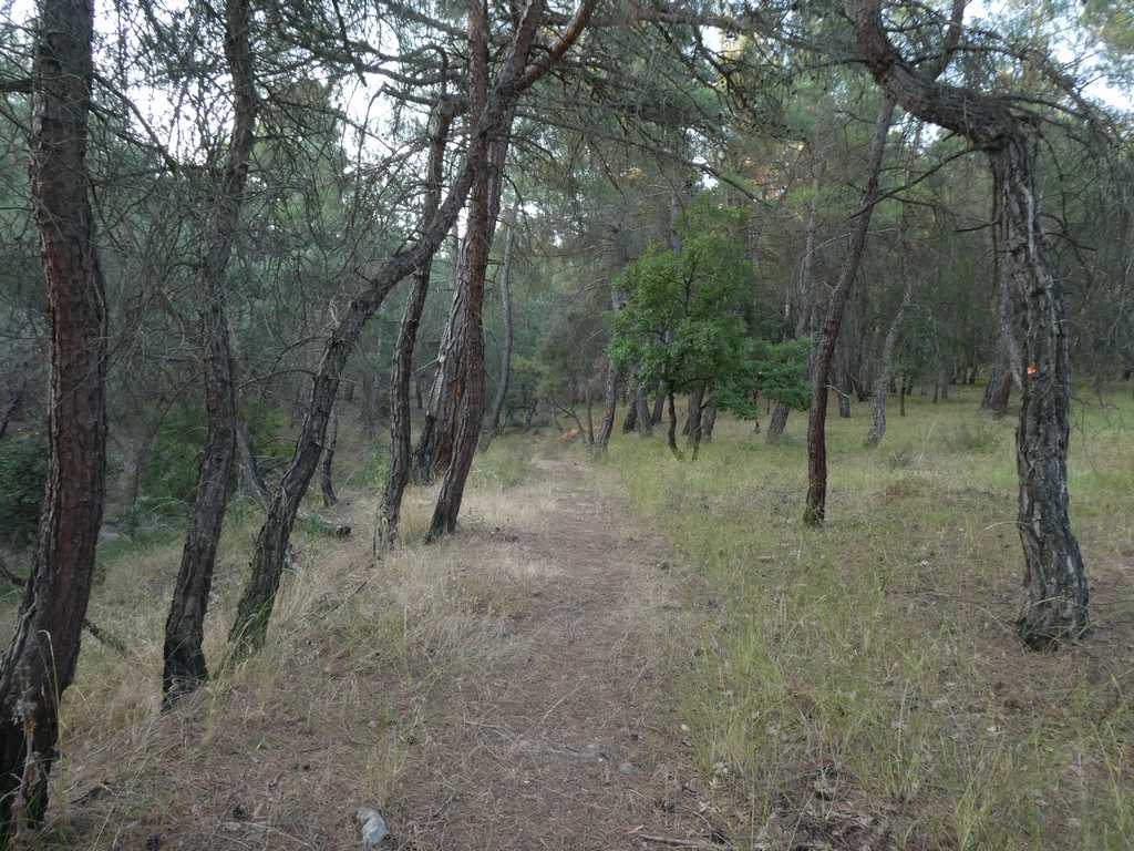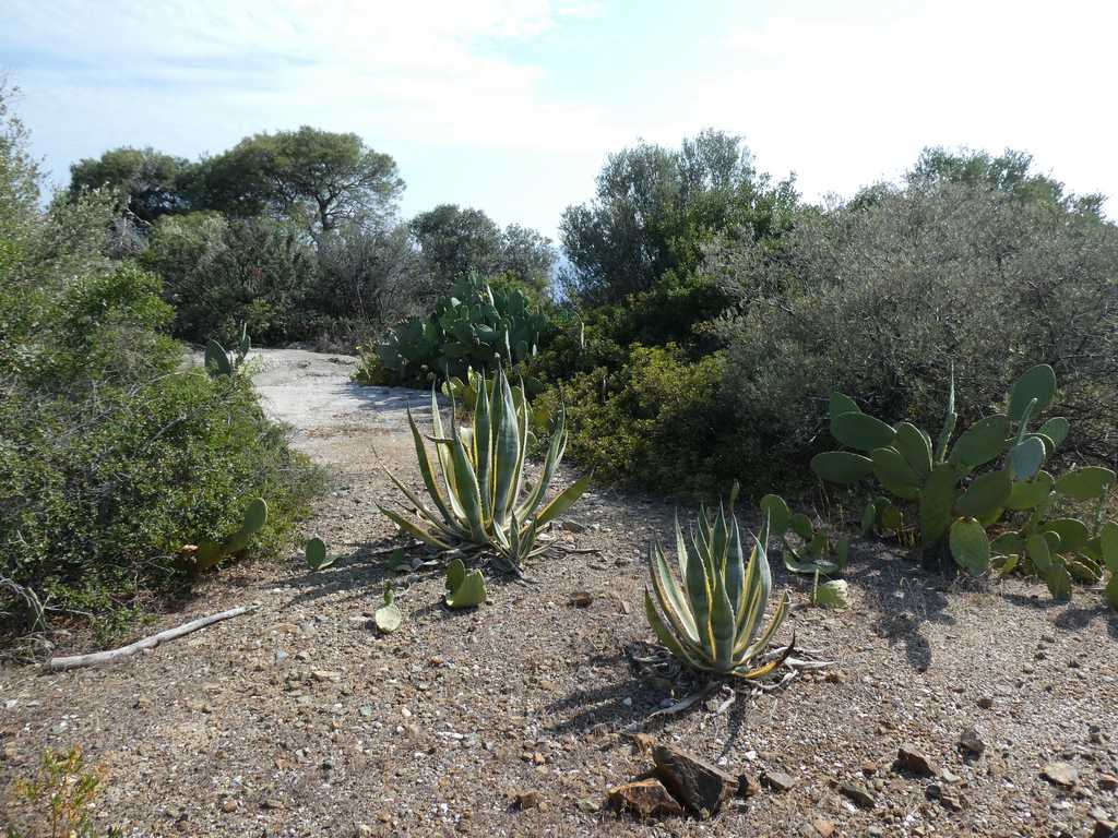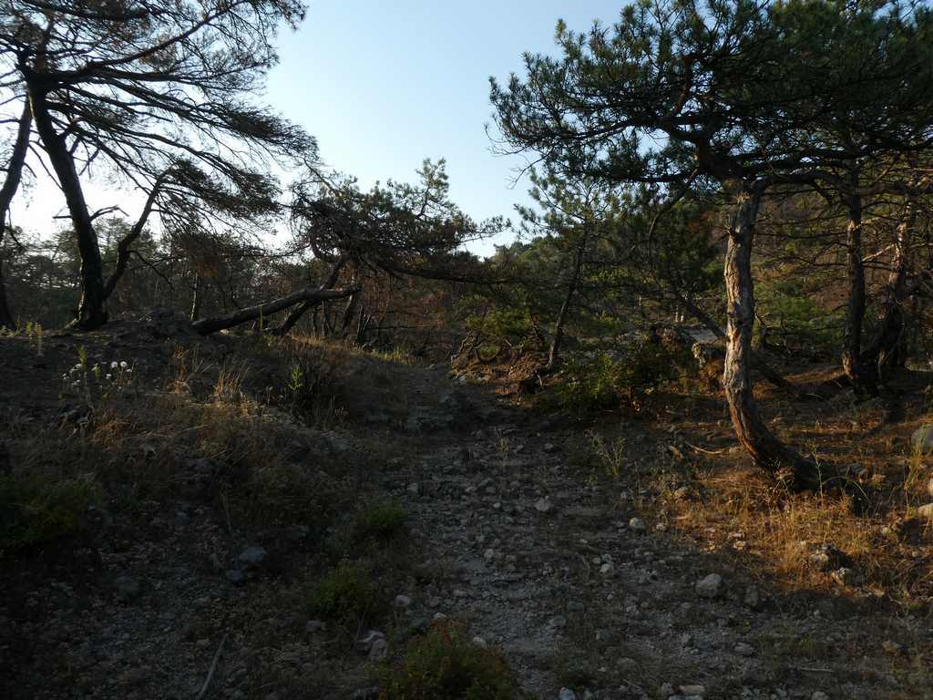 Wir starten bereits kurz nach 06:00 Uhr - heute soll ein heißer Tag werden. Der Weg ist ca. 4 km in eine Richtung lang und Schatten gibt es kaum. Vor einem Jahr (2022) hatte es hier einen großflächigen Waldbrand gegeben. Und der Wald ist extrem geschädigt. Aber an vielen Stellen kann man die Wunder der Natur wieder bewundern: Die Baumwipfel mancher Bäume sprießen wieder grün und aus den Wurzelstöcken mancher Büsche kommen neue Triebe. Das gibt wieder Hoffnung. Jedoch wird die Regeneration sich noch über viele Jahre hinziehen.