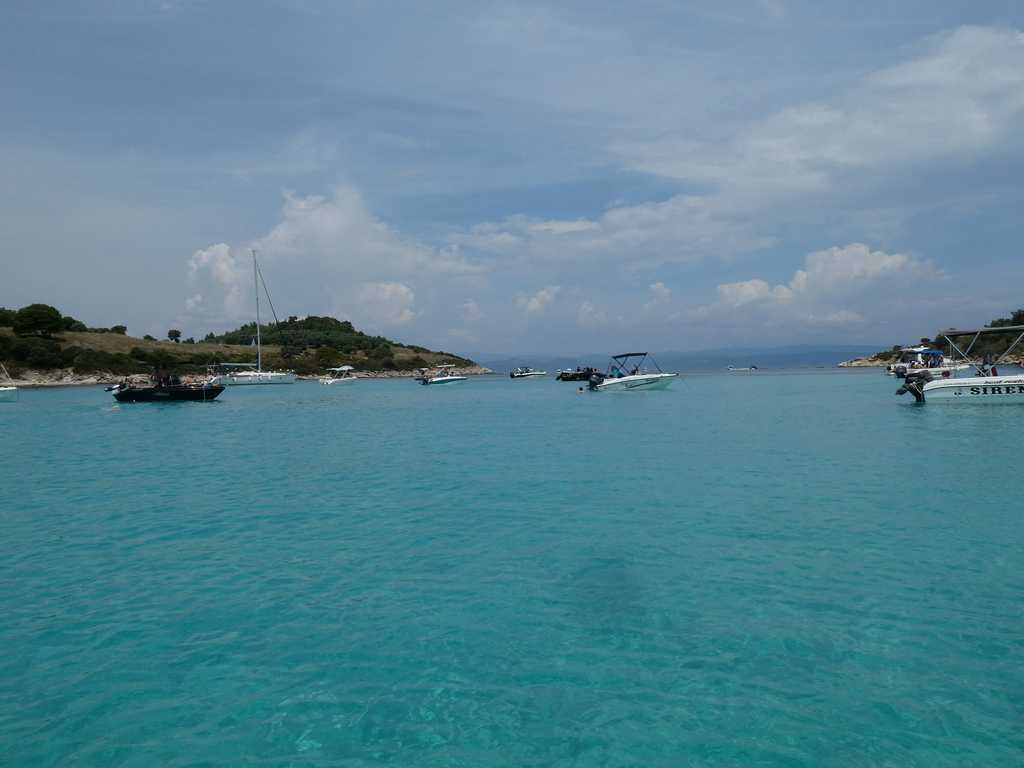 Auf der Fahrt legen wir in vielen Buchten mit glasklarem Wasser an. Die Fische sind gut zu sehen. Wir werfen Anker und klettern über eine kleine Leiter ins Wasser.