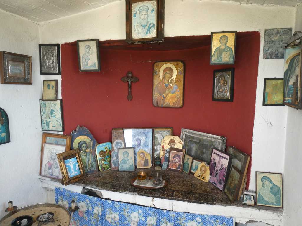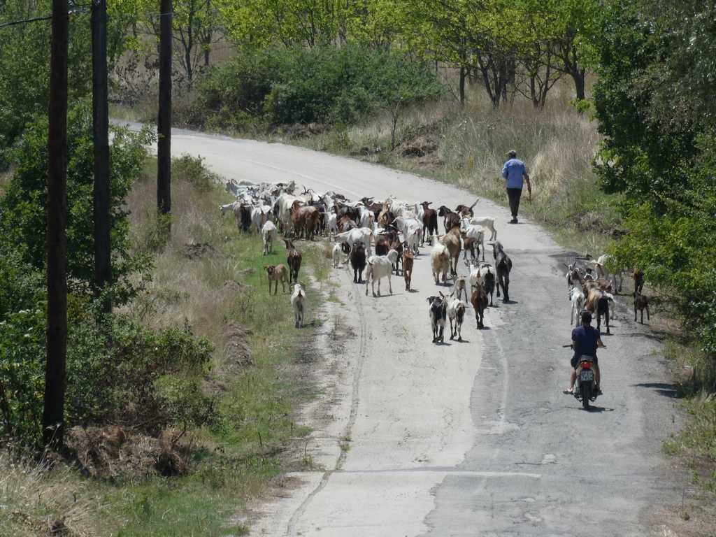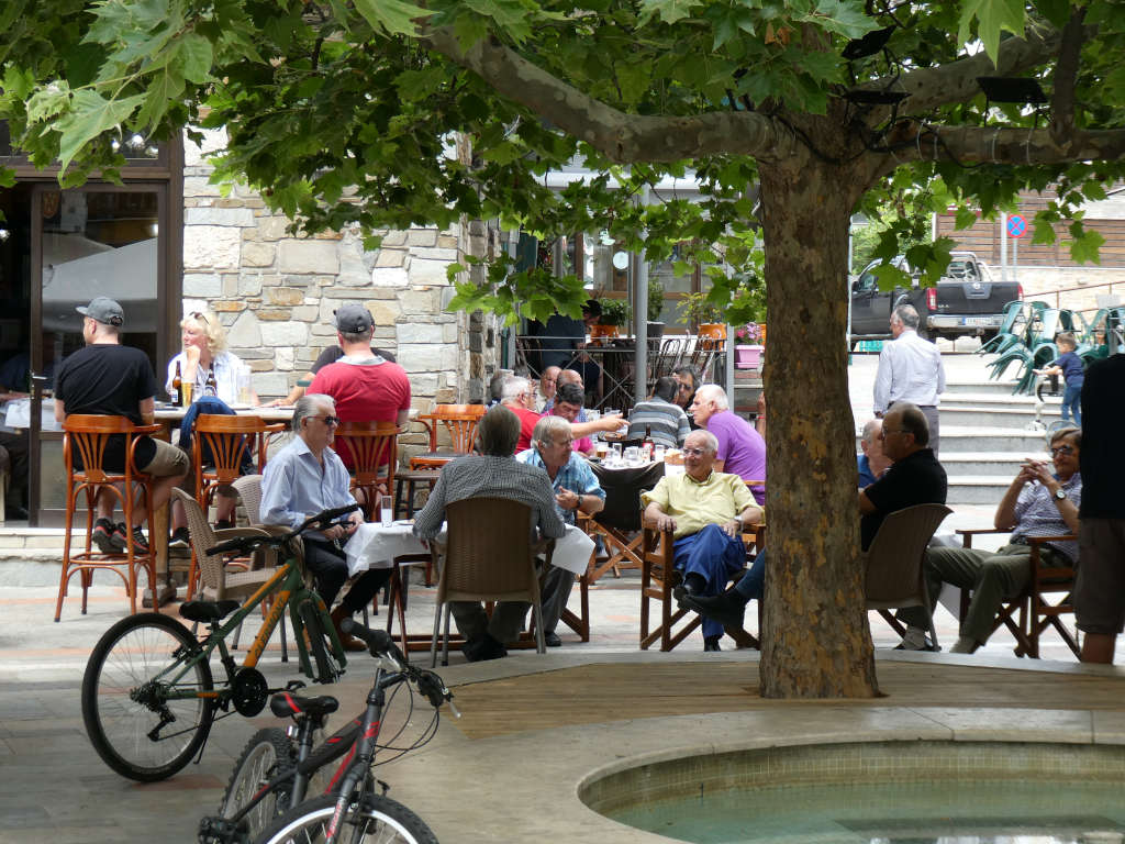 Es ist Sonntag. Zu Hause sind nur die Frauen und die Kinder. Auf dem zentralen Platz (Agira) des Ortes treffen wir zuerst den Pastor, der seinen Gottesdienst beendet hat und dann sehen wir die Männer des Ortes in den kleinen Wirtschaften rund um den Platz sitzen und sich unterhalten. Sie trinken traditionell ihren Tsipouro und essen eine Kleinigkeit dazu - Mezze.