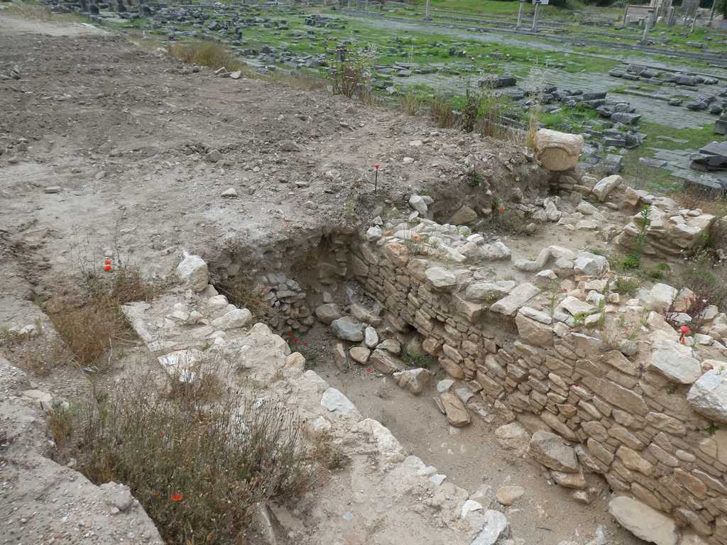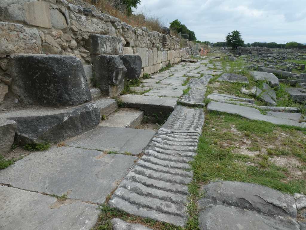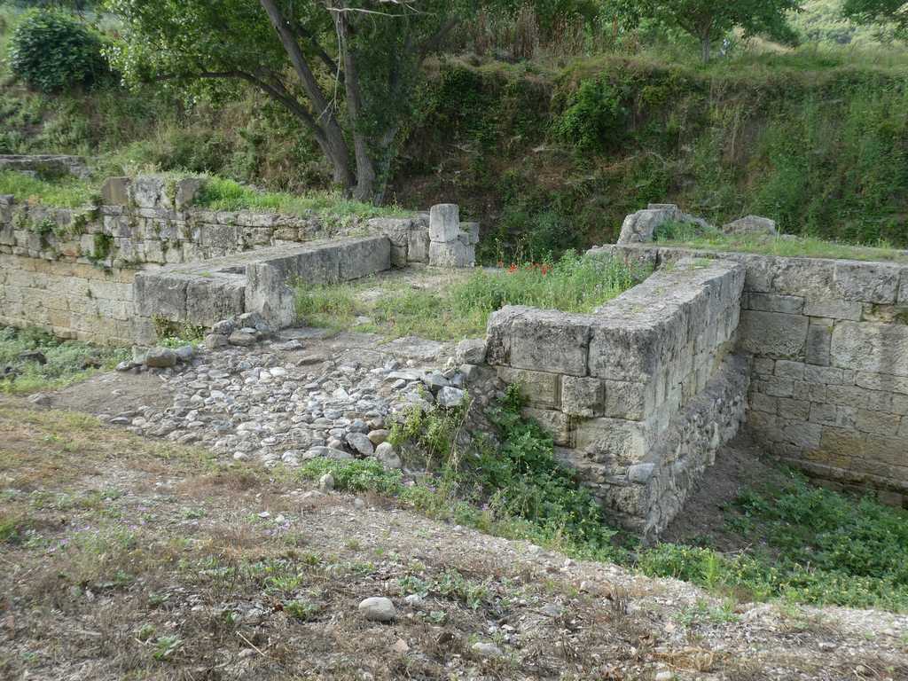 Um das gesamte Gelände der antiken Stadt Amphipolis zieht sich eine lange, extrem dicke Stadtmauer, die an vielen Stellen wieder ausgegraben wurde. Auch die Reste der Durchgangstore sind noch erkennbar.