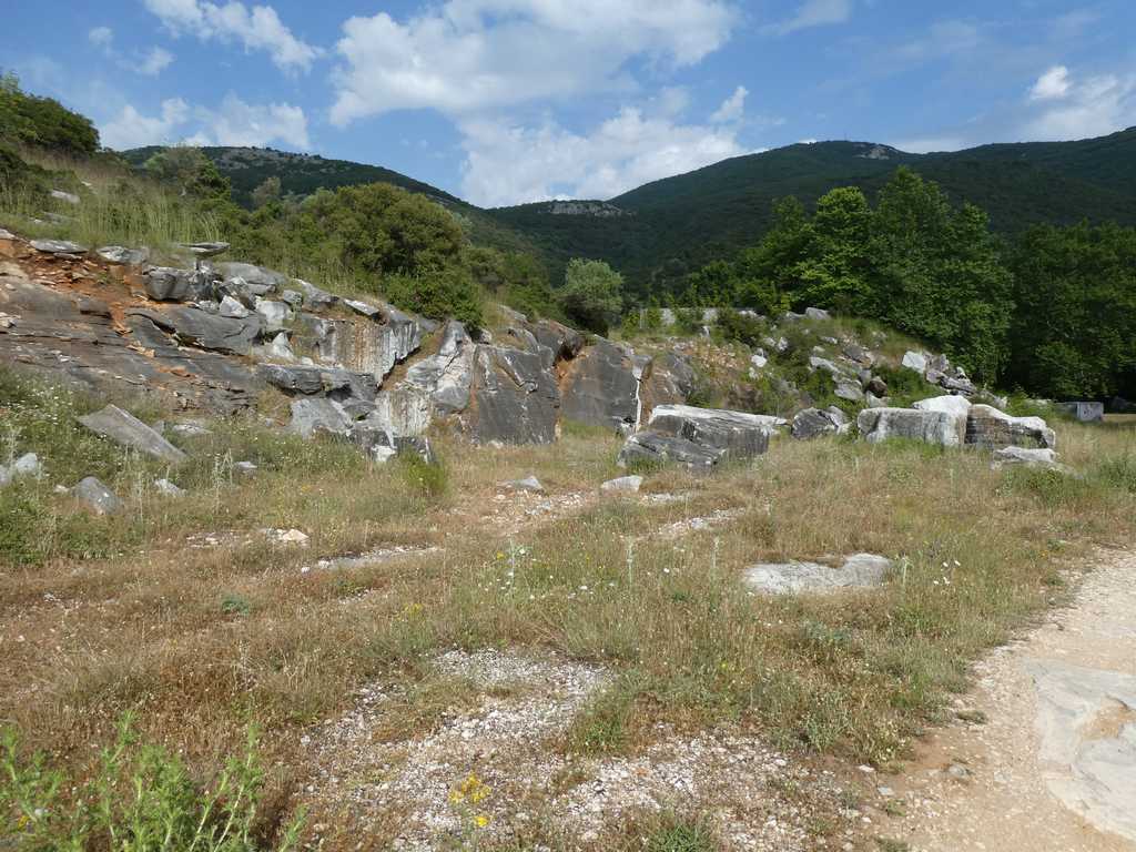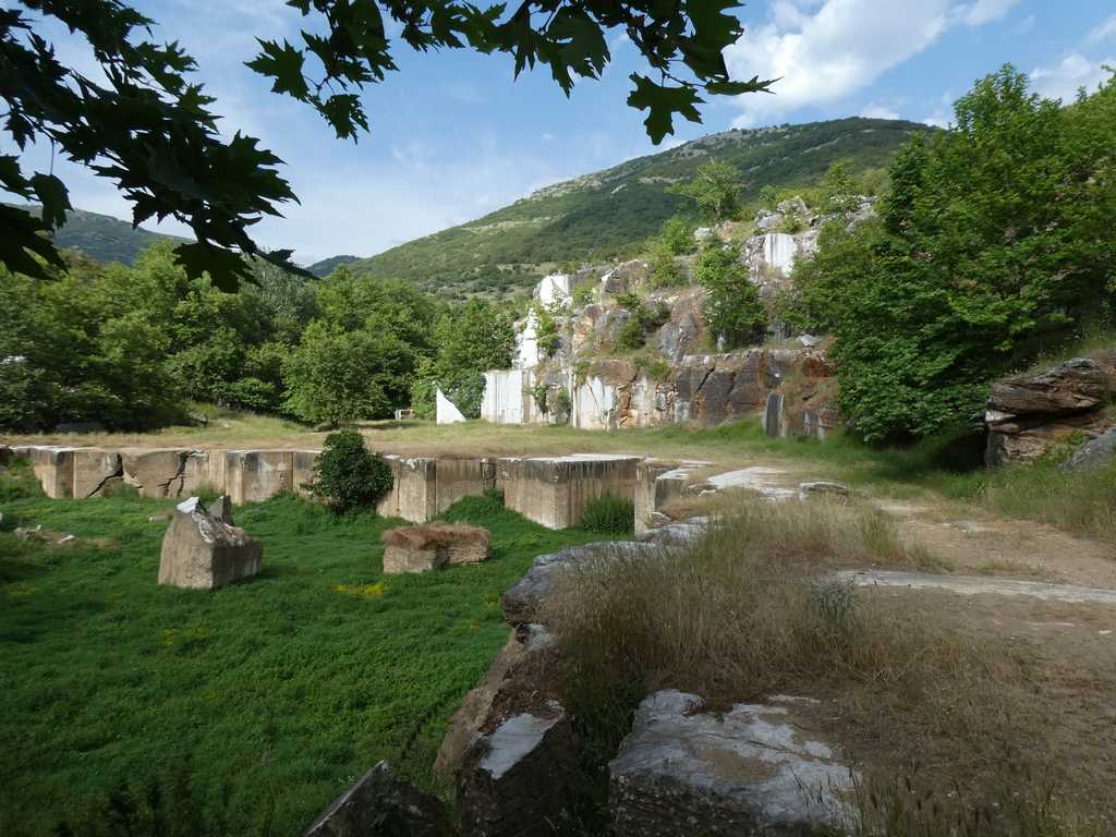 Die Nacht verbringen wir in einem stillgelegten Marmorsteinbruch. Es sieht so aus, als ob aus diesem Steinbruch auch die Steinblöcke für die antiken Städte gewonnen wurden. Er ist nicht der einzige, den wir auf unserer Durchreise sehen. Aber die Struktur des Steines ähnelt sehr denen in Amphipolis.