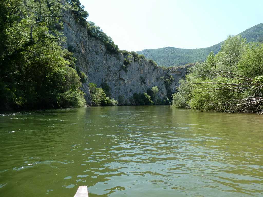 Durch eine sehr geschlängelte Flusslandschaft paddeln wir in absoluter Ruhe von Stavropoli flussabwärts nach Toxotes. Der Fluss windet sich in vielen Schleifen und gibt immer wieder neue Ausblicke auf die hoch aufragenden Steilwände frei. Unterwegs lassen sich viele Vögel beobachten.
