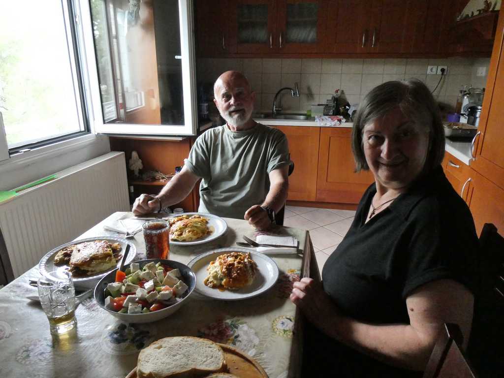 Glücklicherweise konnten wir unseren neuen Kühlschrank zu einem ganz netten griechischen Ehepaar nach Hause schicken lassen. Während des Umbaus waren wir dort mehrere Tage zu Gast und wurden wie die eigene Familie aufgenommen und reichlich bewirtet.