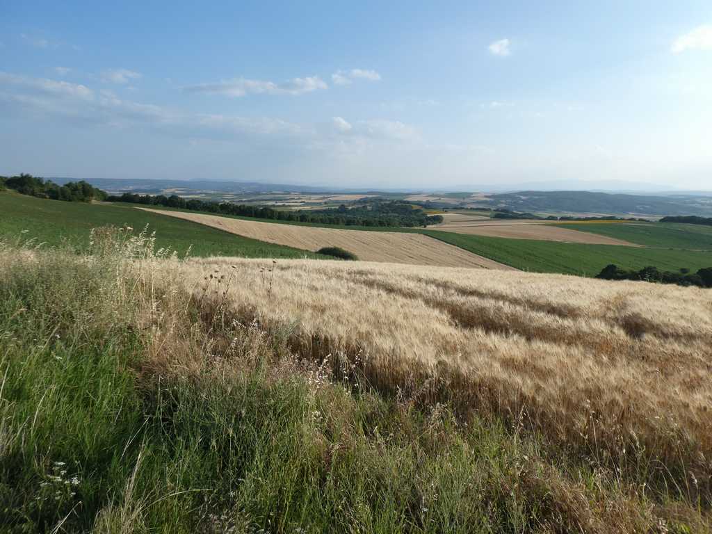 Die Landschaft ist hier leicht hügelig und wird landwirtschaftlich intensiv genutzt. Vorherrschende Früchte sind Mais, Weizen, Sonnenblumen und Baumwolle. Doch jeder Bauer hat auch noch Obst- und Nussbäume am Feldrain stehen sowie ein kleines Gemüsefeld, auf dem auch Wassermelonen wachsen. Feigen und Granatapfel sind hier selbstverständlich - für uns jedoch exotische Früchte.