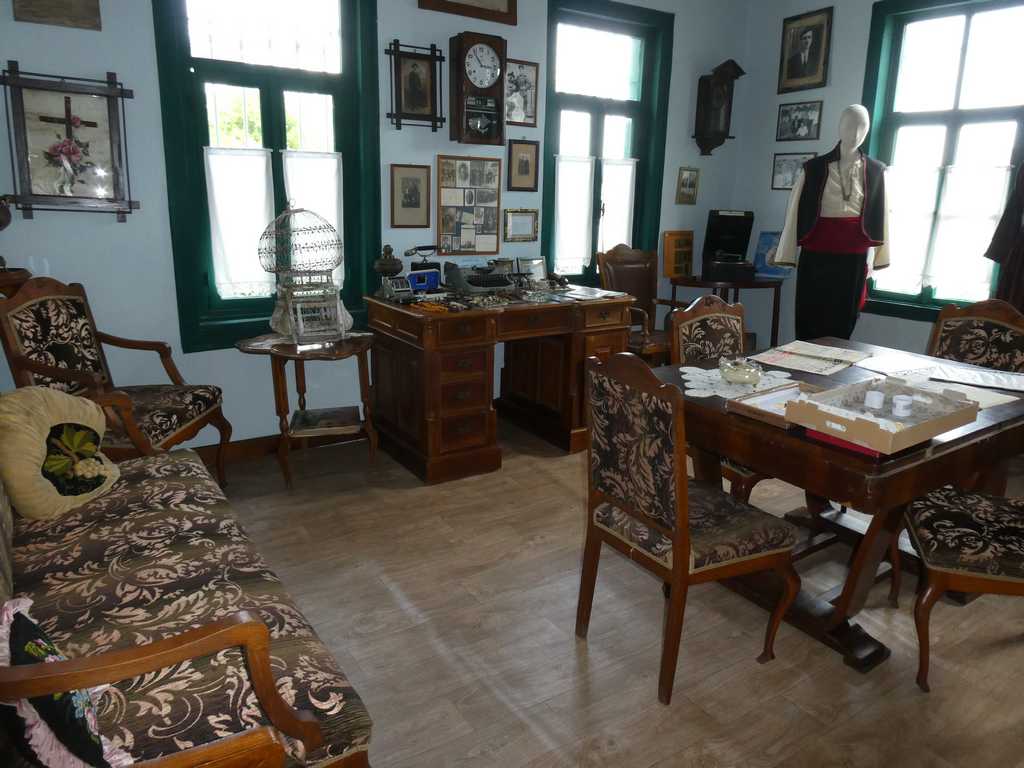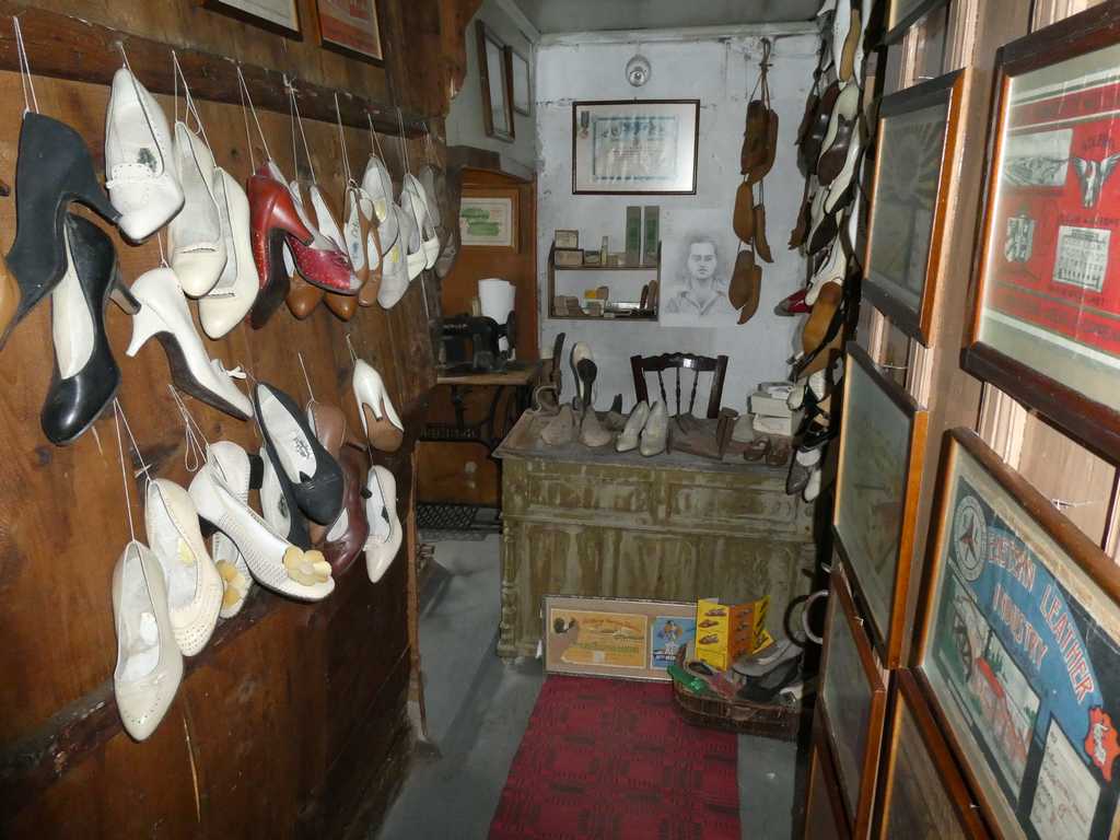 Einige Zimmer sind originalgetreu wieder eingerichtet worden. Zu sehen ist hier das Wohnzimmer mit vielen gesammelten Alltagsgegenständen und eine unter der Treppe eingerichtete winzige Schusterwerkstatt. Wir erfahren, dass der letzte Schuster genau an diesem Arbeitsplatz Schuhe reparierte und auch neue herstellte.